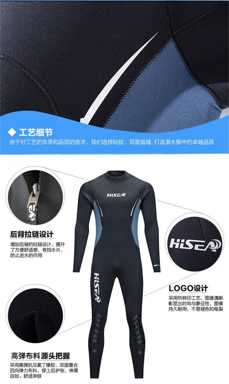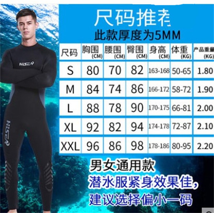 HiSEA Haisheng 5mm diving suit outdoor semi-dry diving men's neoprene one-piece snorkeling suit surfing and paddling swimsuit black 2XL