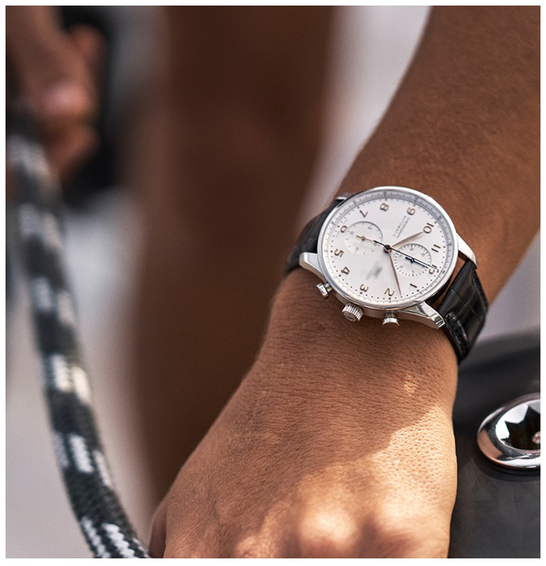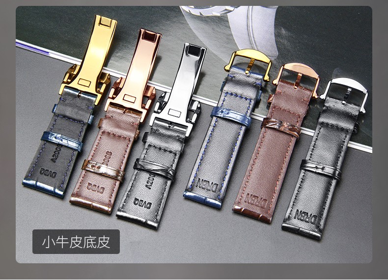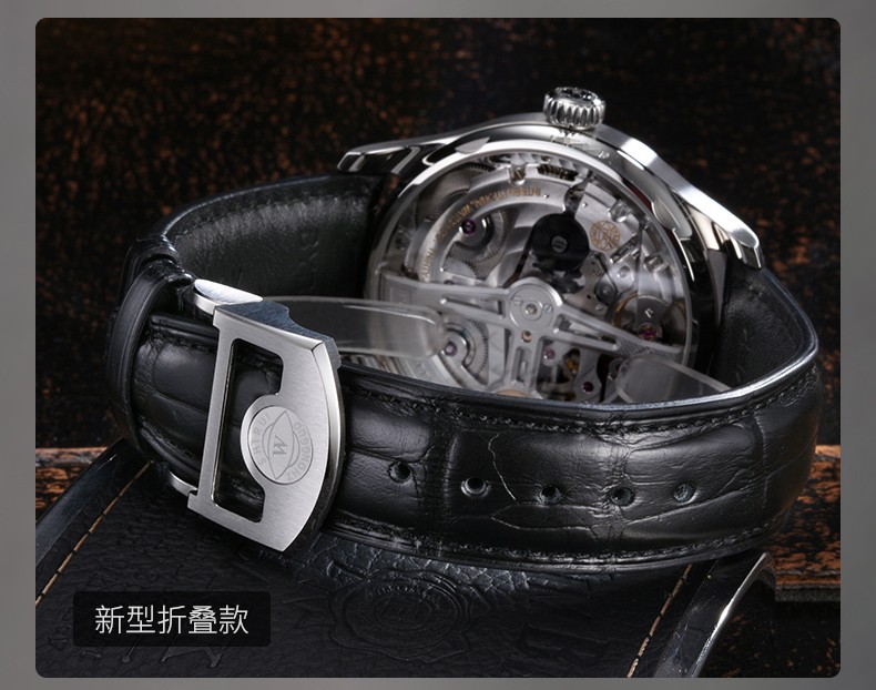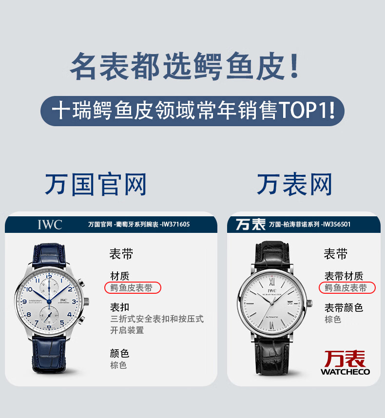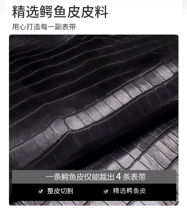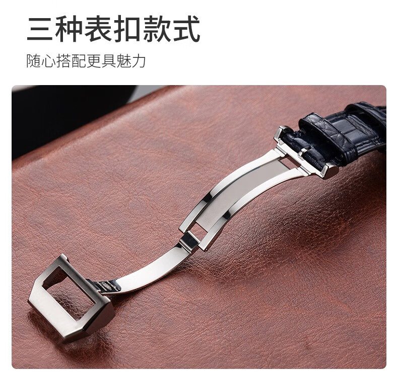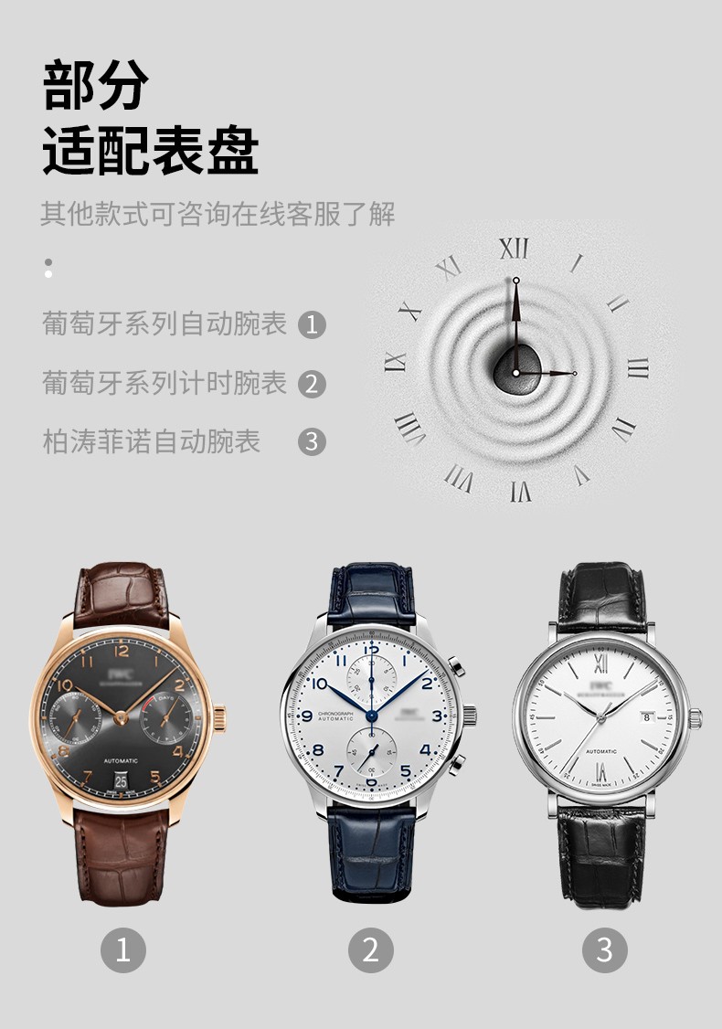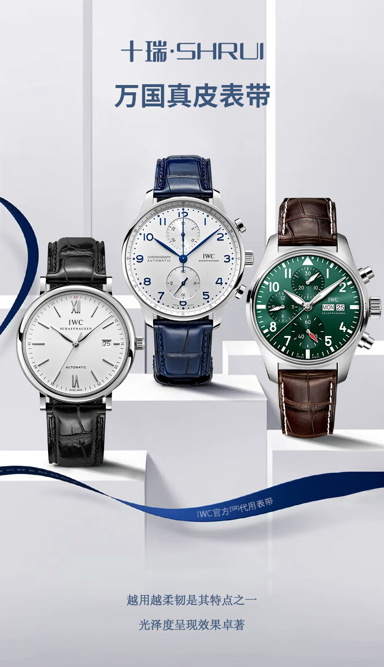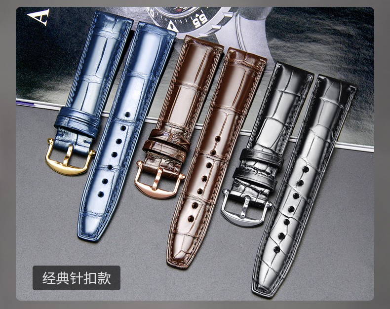 SHIRUI is suitable for IWC watch straps, IWC crocodile leather straps, Portuguese Portofino genuine leather watch straps for men, black folding model - no buckle 20mm