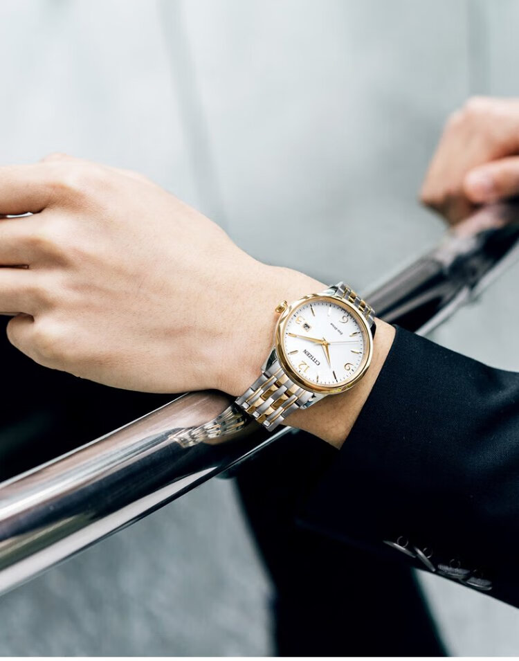 CITIZEN watch men's Japanese and Korean watch light kinetic energy white plate day display steel belt business fashion New Year gift BM7304-59A