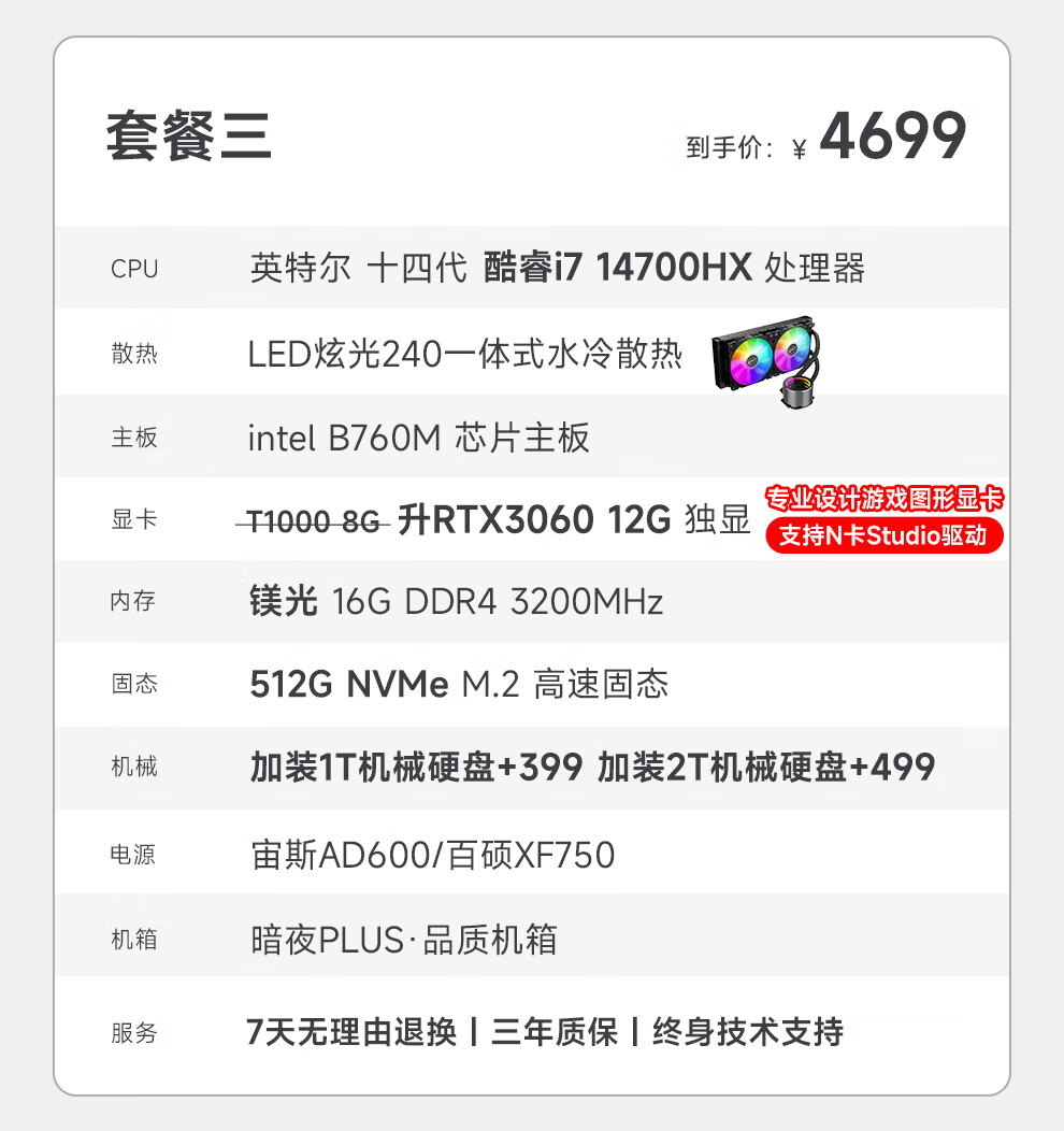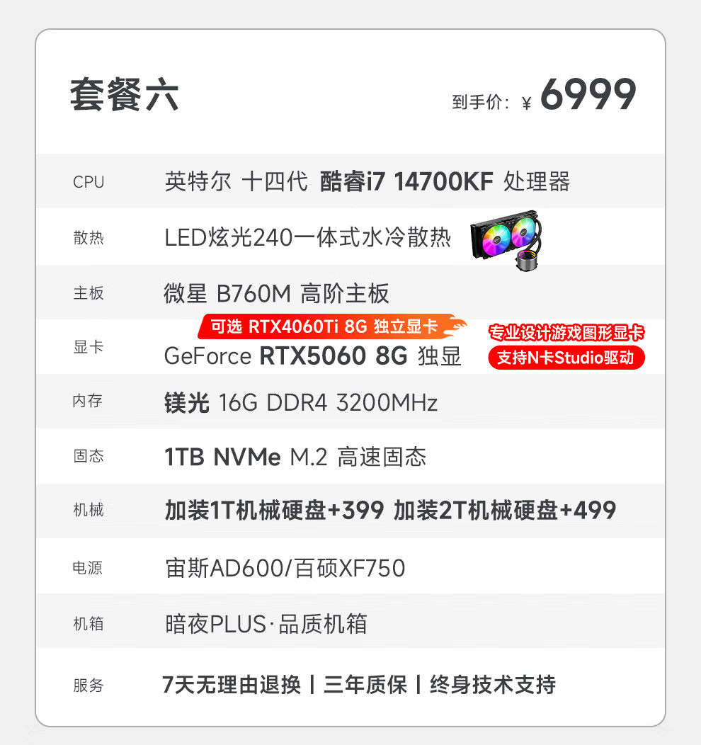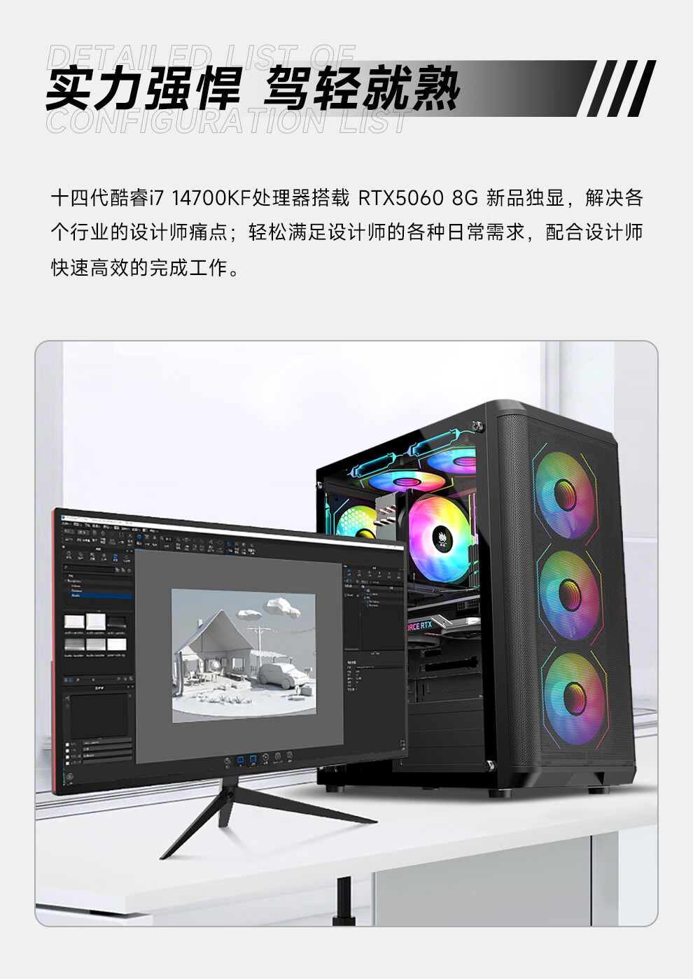Navigator i7 14700KF/T1000/A2000 liter RTX4060Ti designer drawing indoor modeling rendering video editing film and television post-production desktop computer host assembly machine 14th generation Core i7丨6G graphics card丨PS drawing/editing