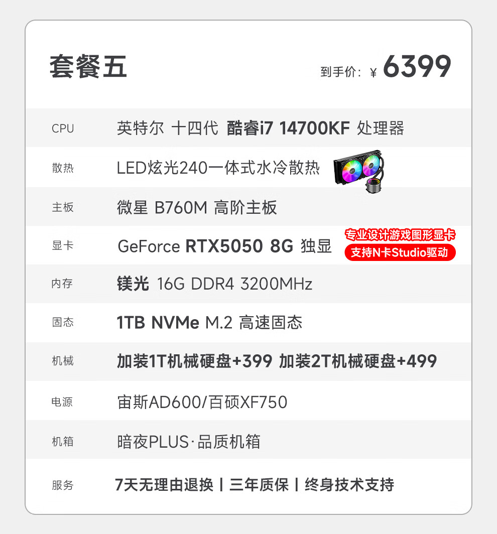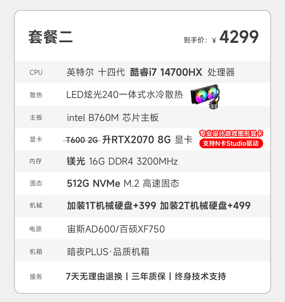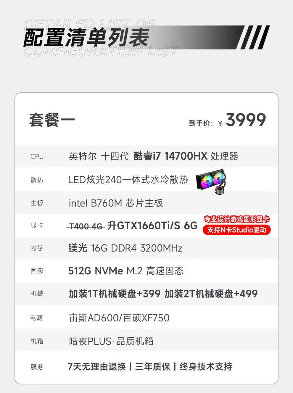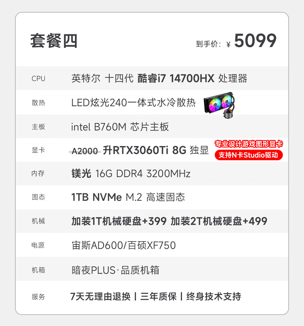 Navigator i7 14700KF/T1000/A2000 liter RTX4060Ti designer drawing indoor modeling rendering video editing film and television post-production desktop computer host assembly machine 14th generation Core i7丨6G graphics card丨PS drawing/editing