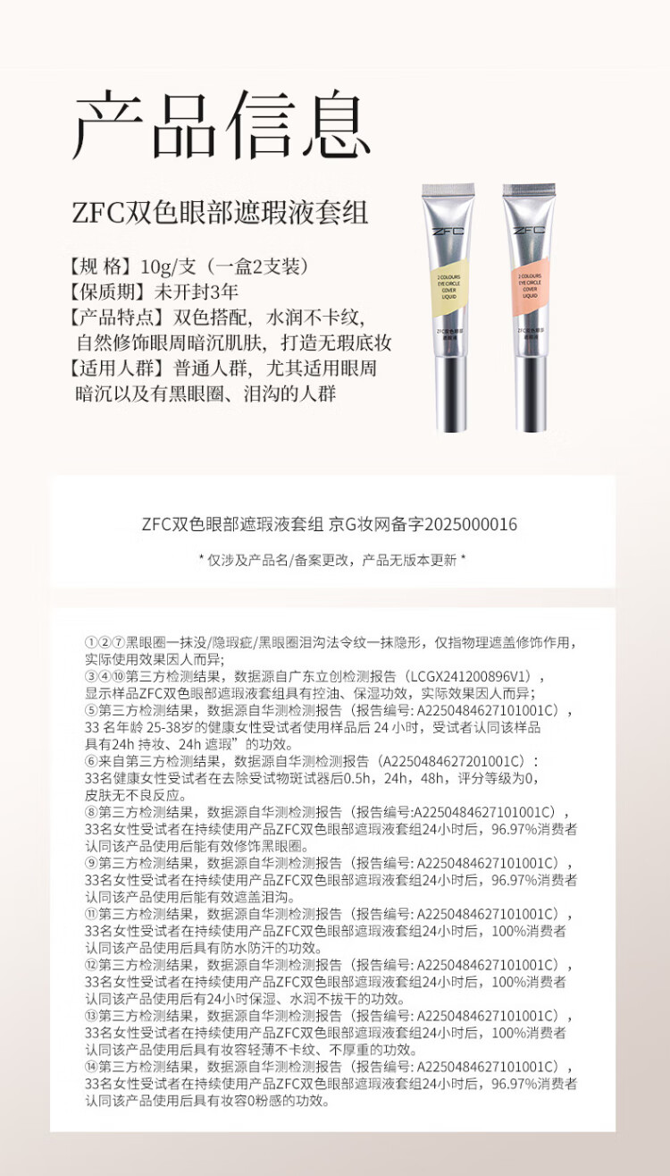 ZFC Dual Color Concealer Eye Concealer Covers Dark Circles Evens Skin Color Brightens Highlights Concealer Valentine's Day Orange + Beige 20g