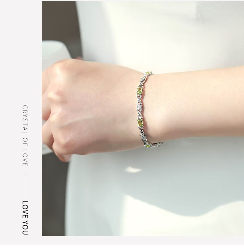 GEM STONE KING 4 carat green peridot bracelet for women 925 silver colored gemstone bracelet as a Women's Day gift for wife 925 silver plated platinum