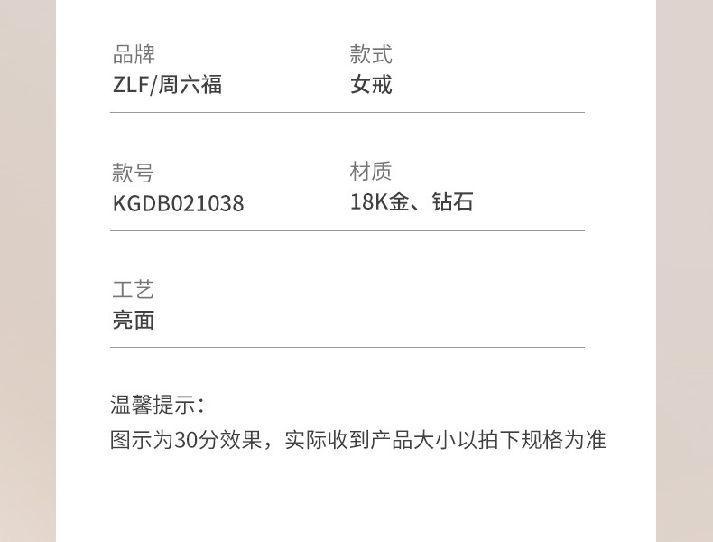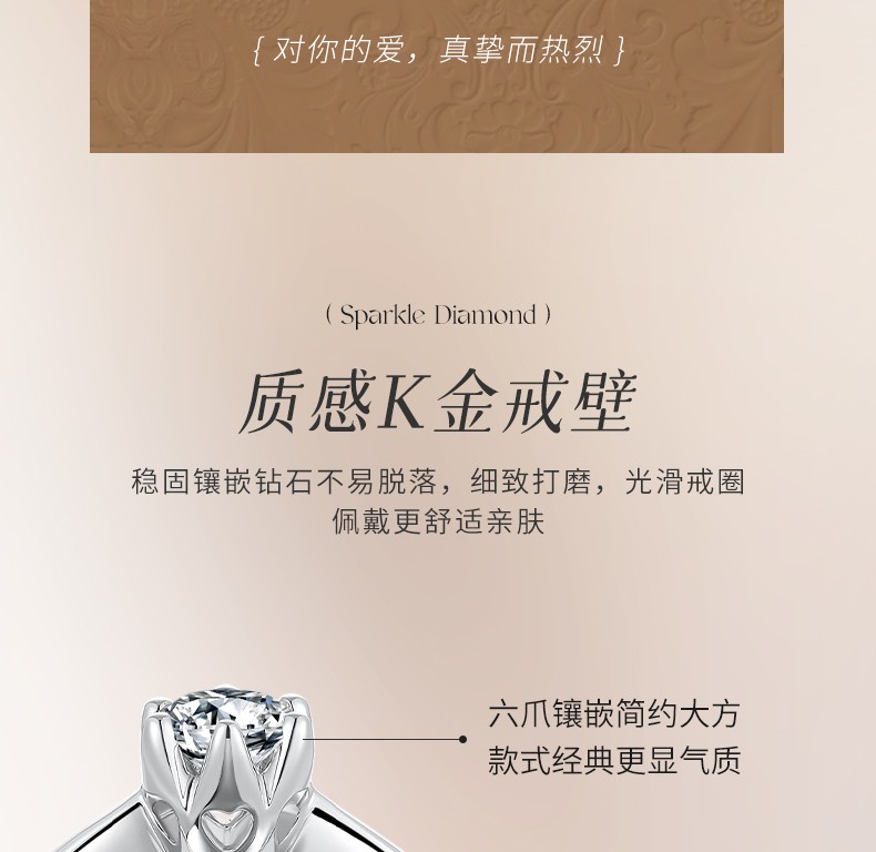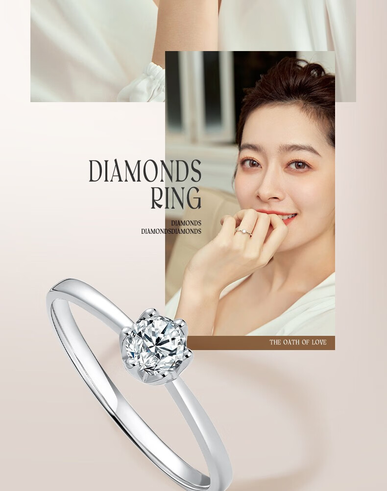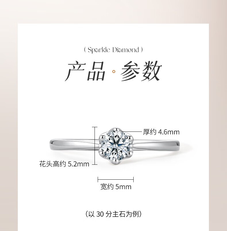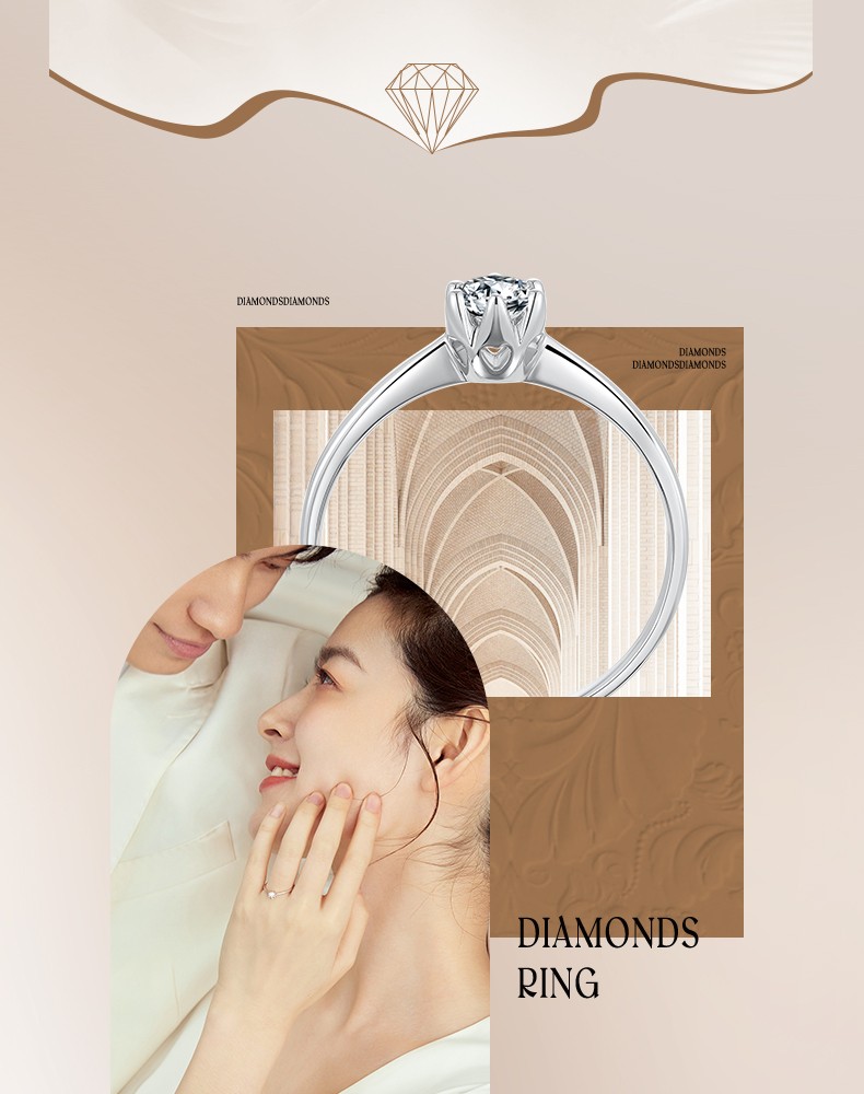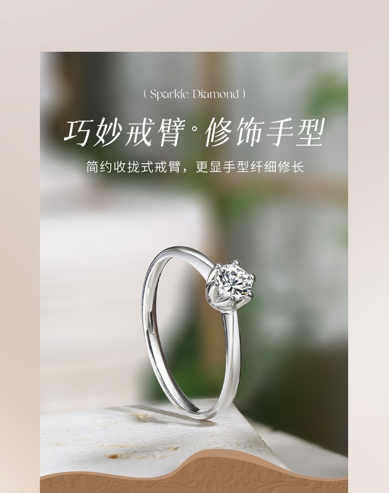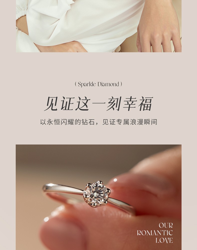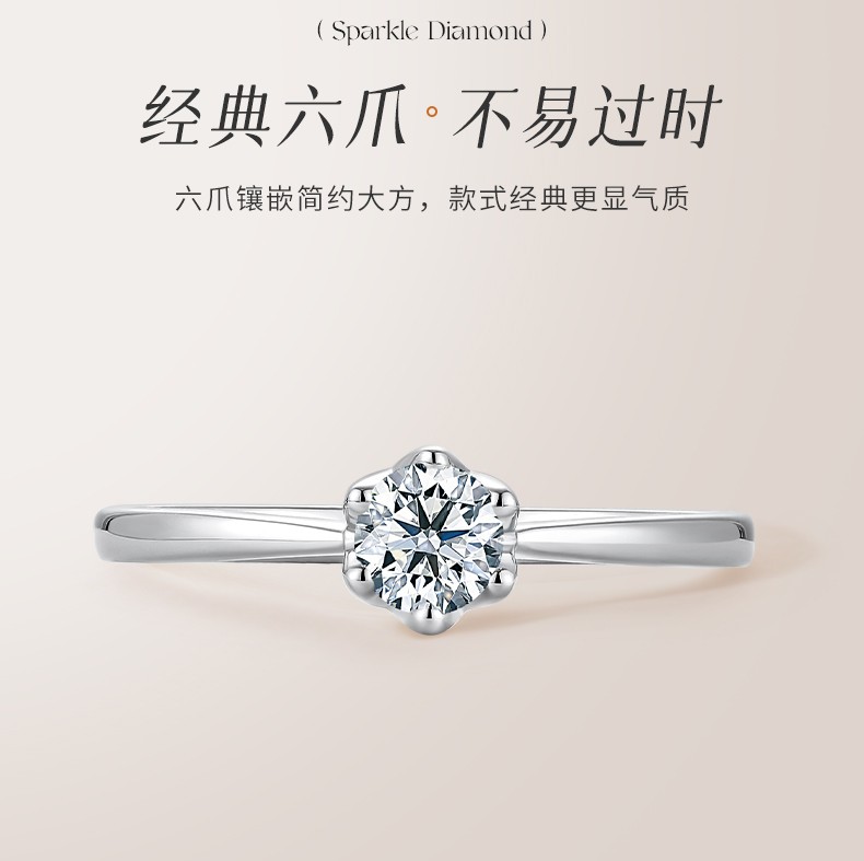 Saturday Fortune (ZLF) 18K gold diamond ring for women, sparkling classic six-claw engagement and proposal wedding diamond ring, single 30 points SI/IJ size 12