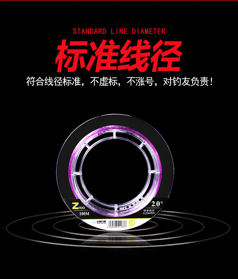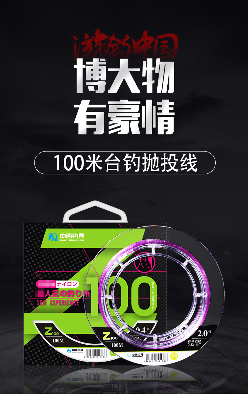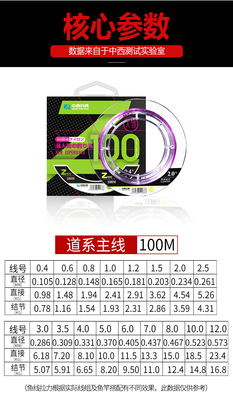 Chinese and Western fishing line, main line, nylon line, large size fishing line, throwing fishing line, fishing line, designated fishing line in China, road system 2.0/100 meters