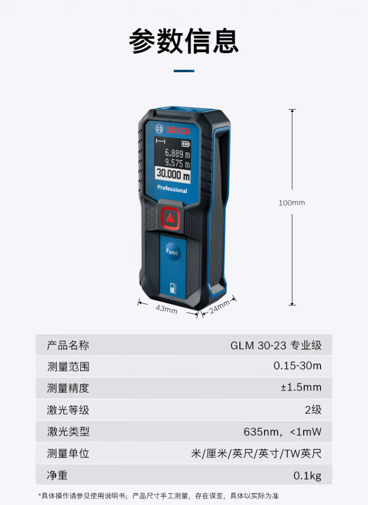 Bosch (BOSCH) 30-meter professional infrared distance meter electronic ruler laser ruler room measuring instrument GLM 30-23