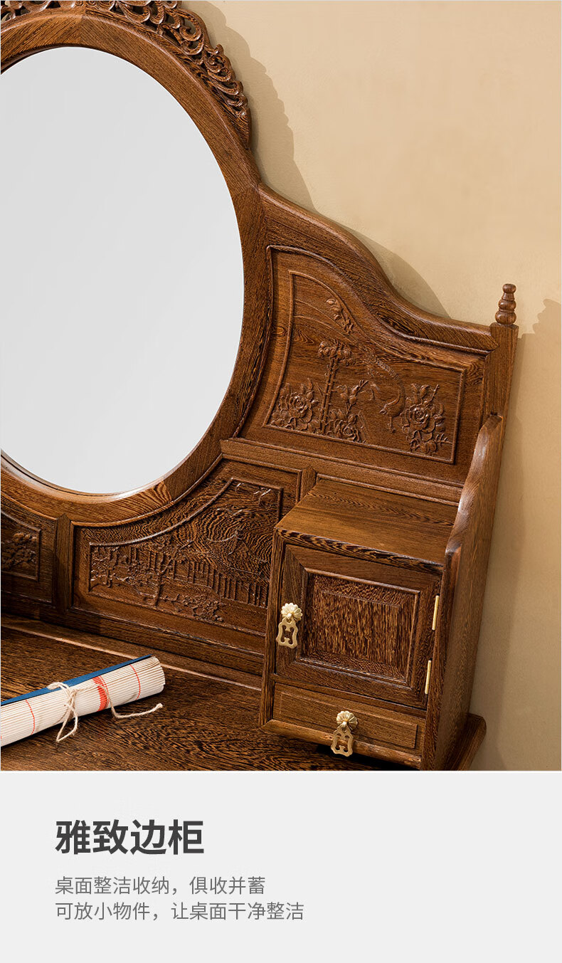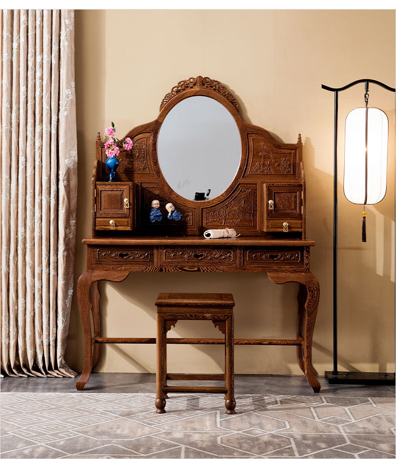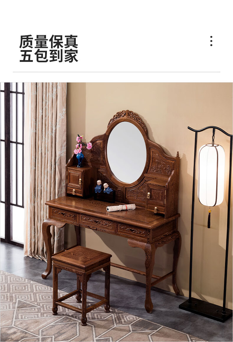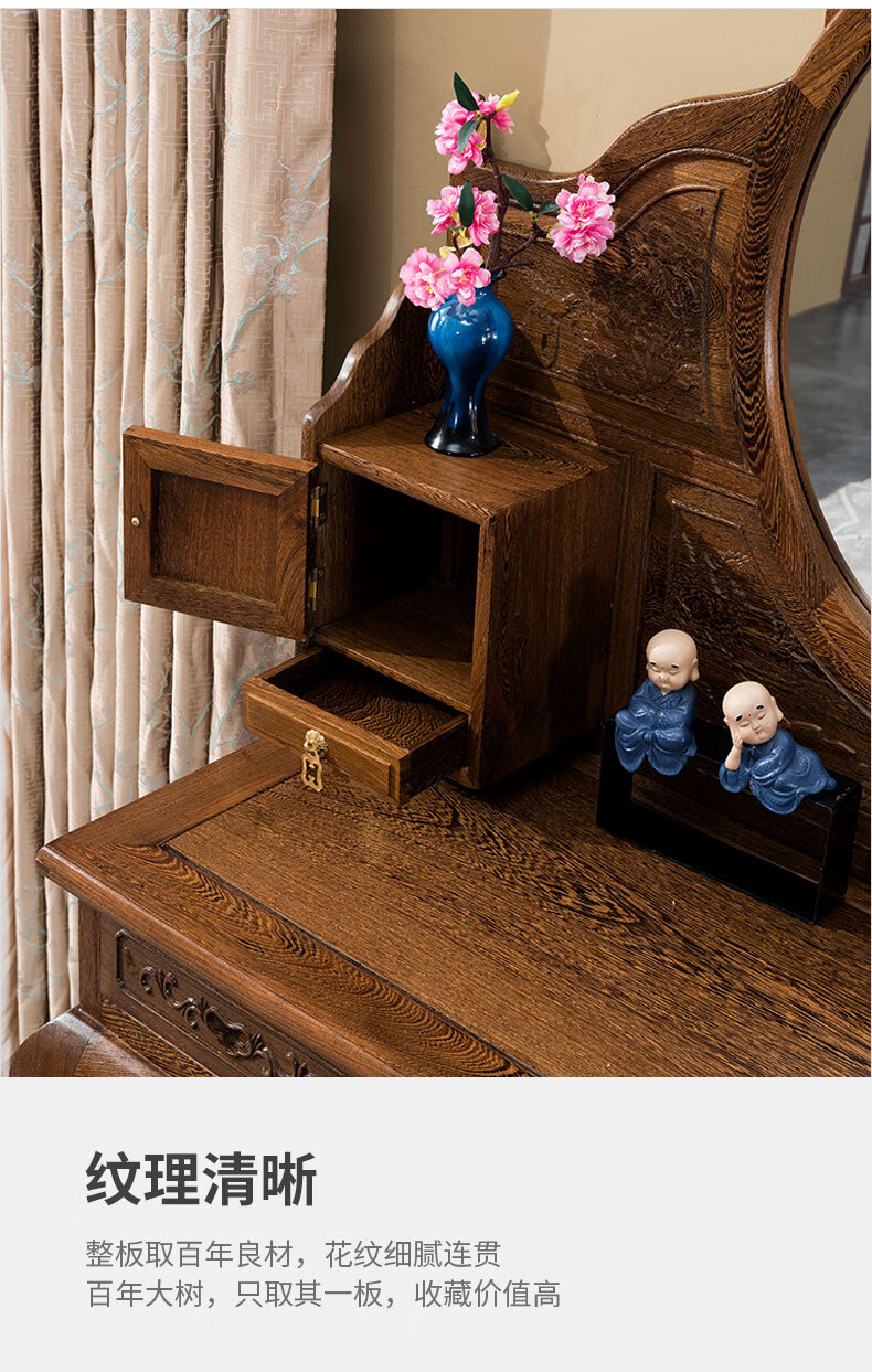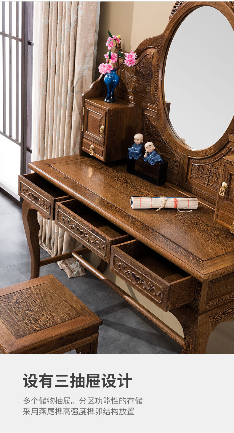Tiger Master Mahogany Furniture African Chicken Wing Wood (scientific name: African Cliffwood) Solid Wood Dressing Table and Stool Combination Dressing Table Chinese Antique Bedroom Furniture