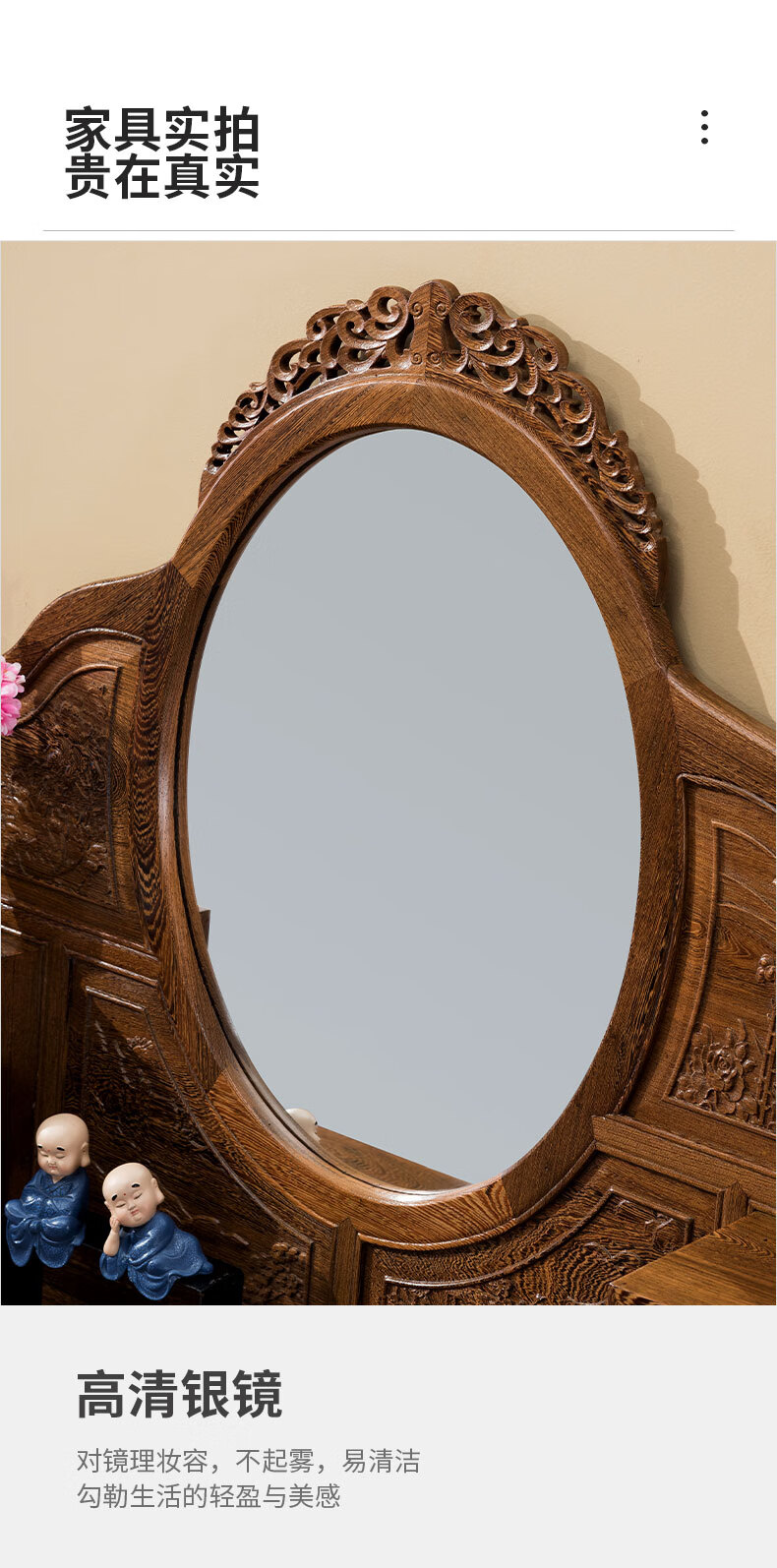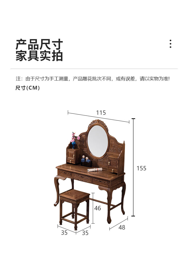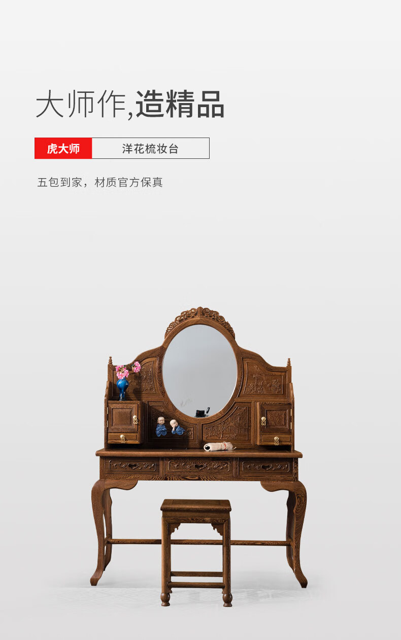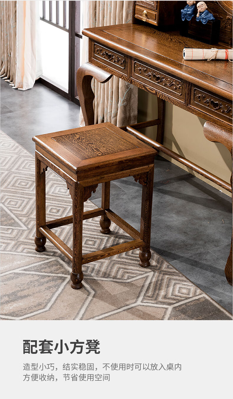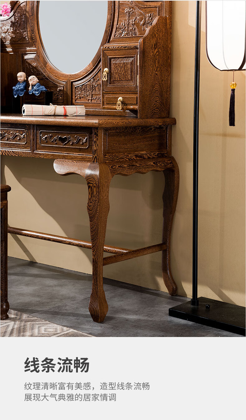 Tiger Master Mahogany Furniture African Chicken Wing Wood (scientific name: African Cliffwood) Solid Wood Dressing Table and Stool Combination Dressing Table Chinese Antique Bedroom Furniture