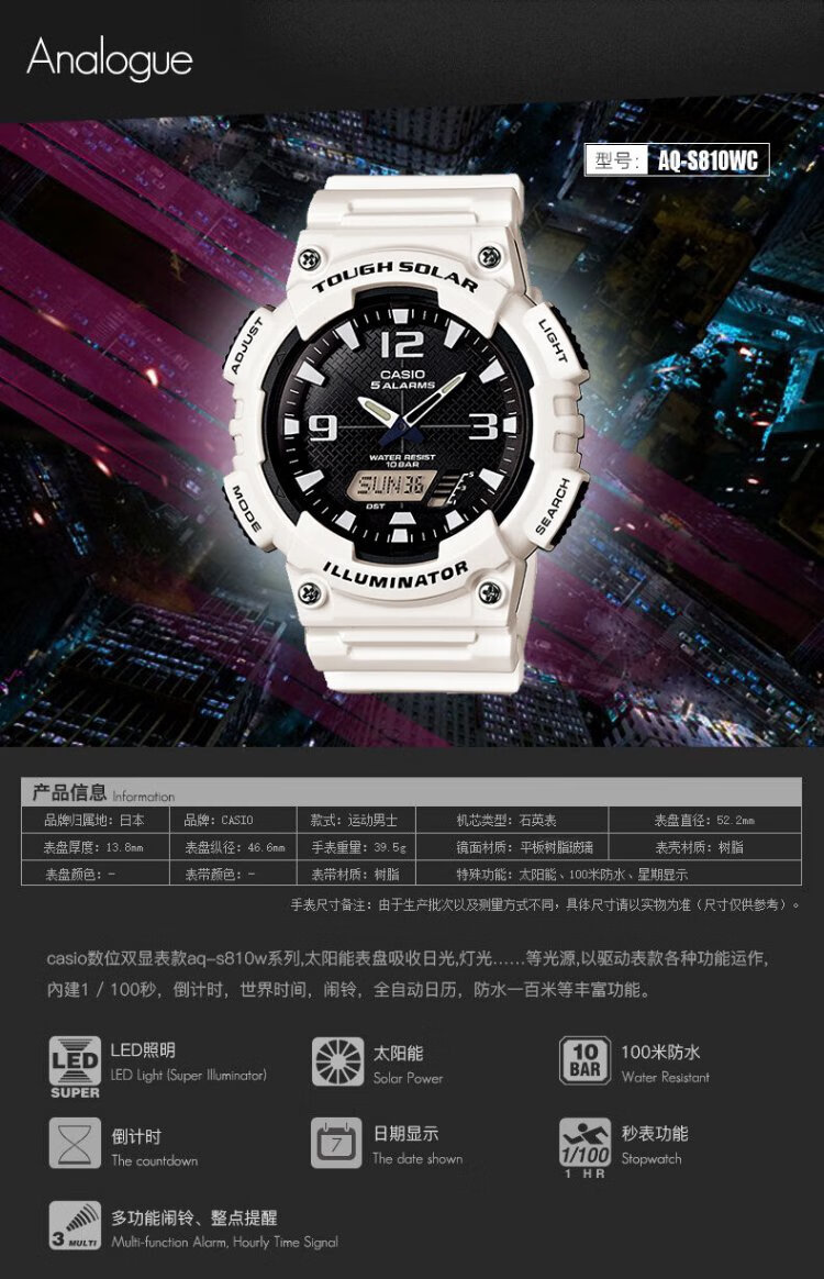 CASIO SPORT AQ-S810 Casio men's watch sports solar watch gift AQ-S810W-1AVDF-100 meters waterproof