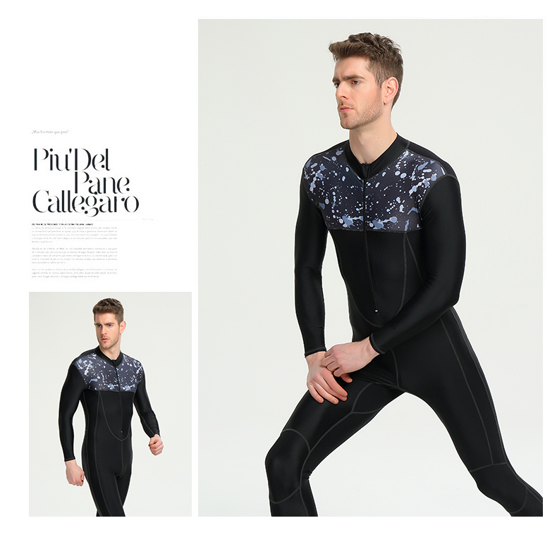 XUANHAI one-piece swimsuit men's long-sleeved trousers full-body sun protection quick-drying surfing and drifting wetsuit men's swimsuit suit camouflage black XL