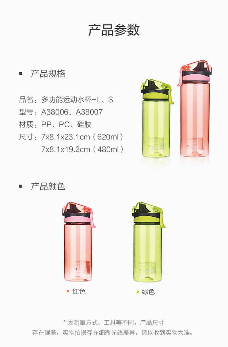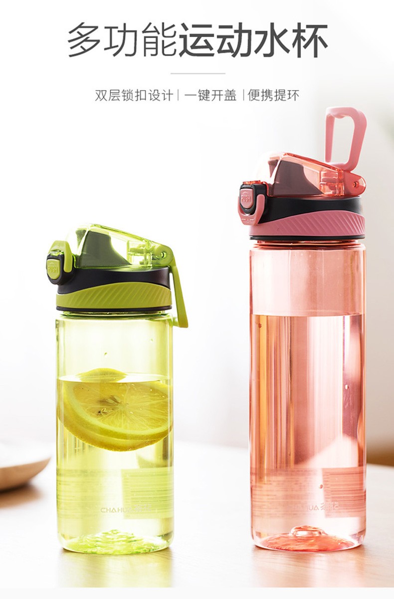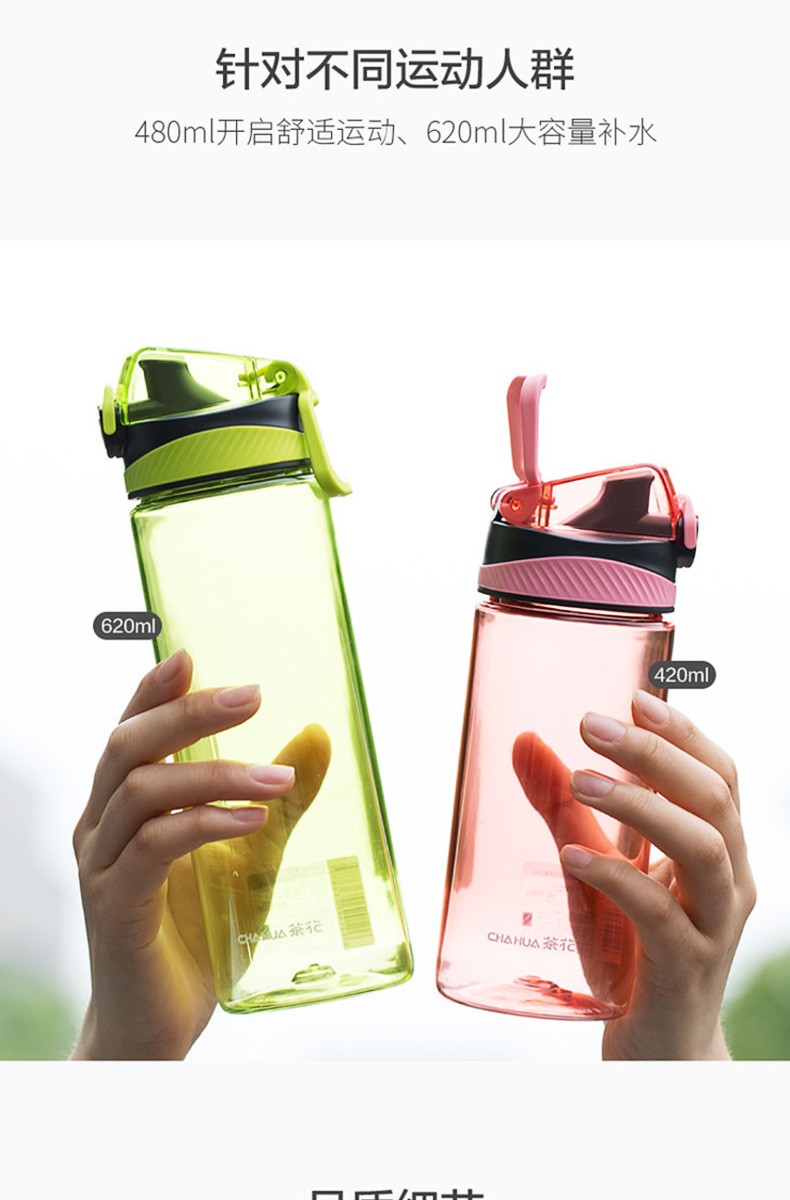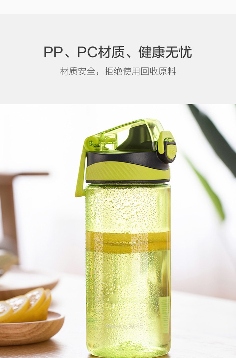 Camellia Portable Sports Bottle Couple Series Outdoor Travel Leakproof Student Handy Plastic Water Cup Green 1 piece 620ml