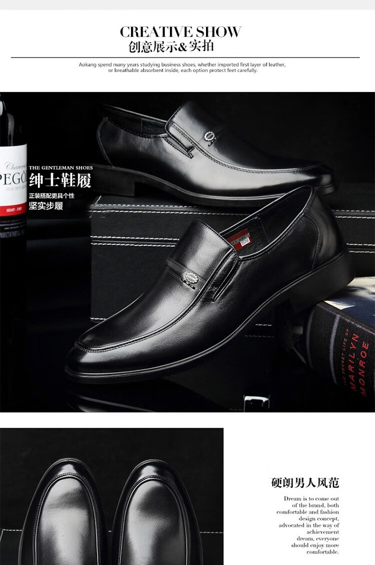 Aokang men's shoes spring men's formal shoes business cowhide leather shoes men's genuine leather footwear middle-aged dad shoes low-top breathable single shoes black upgraded version 118N 41