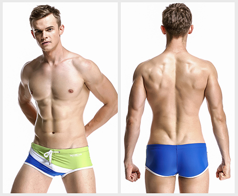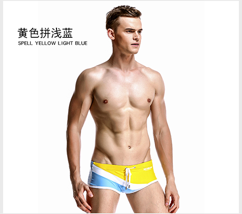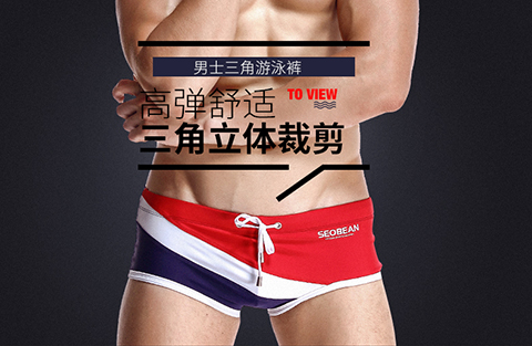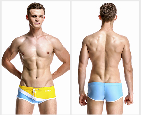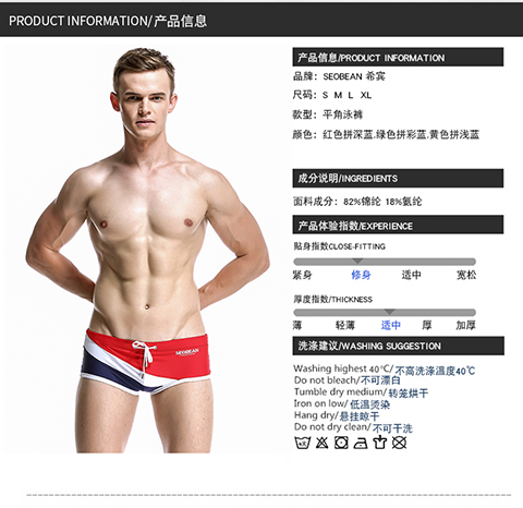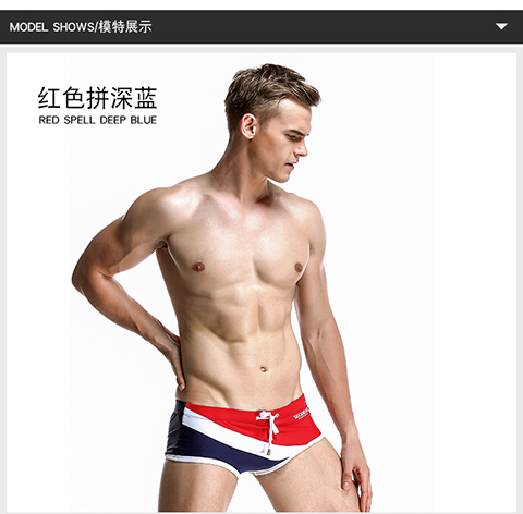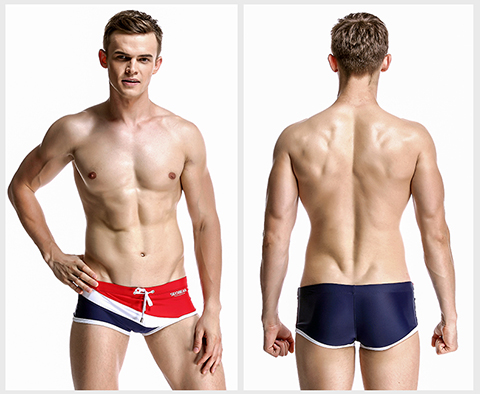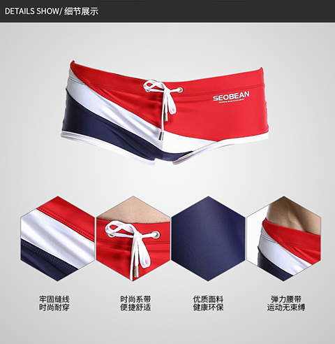 Hibbing (SEOBEAN) men's briefs swimming briefs small boxer sports chlorine-resistant high elastic comfortable low-waist tight sexy hot spring swimming trunks red with dark blue L