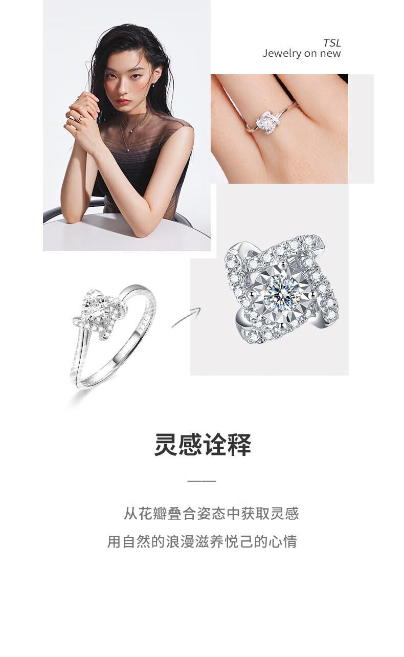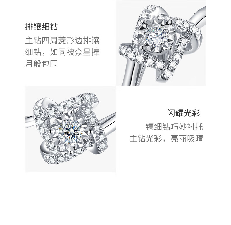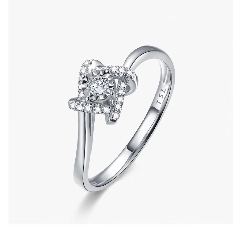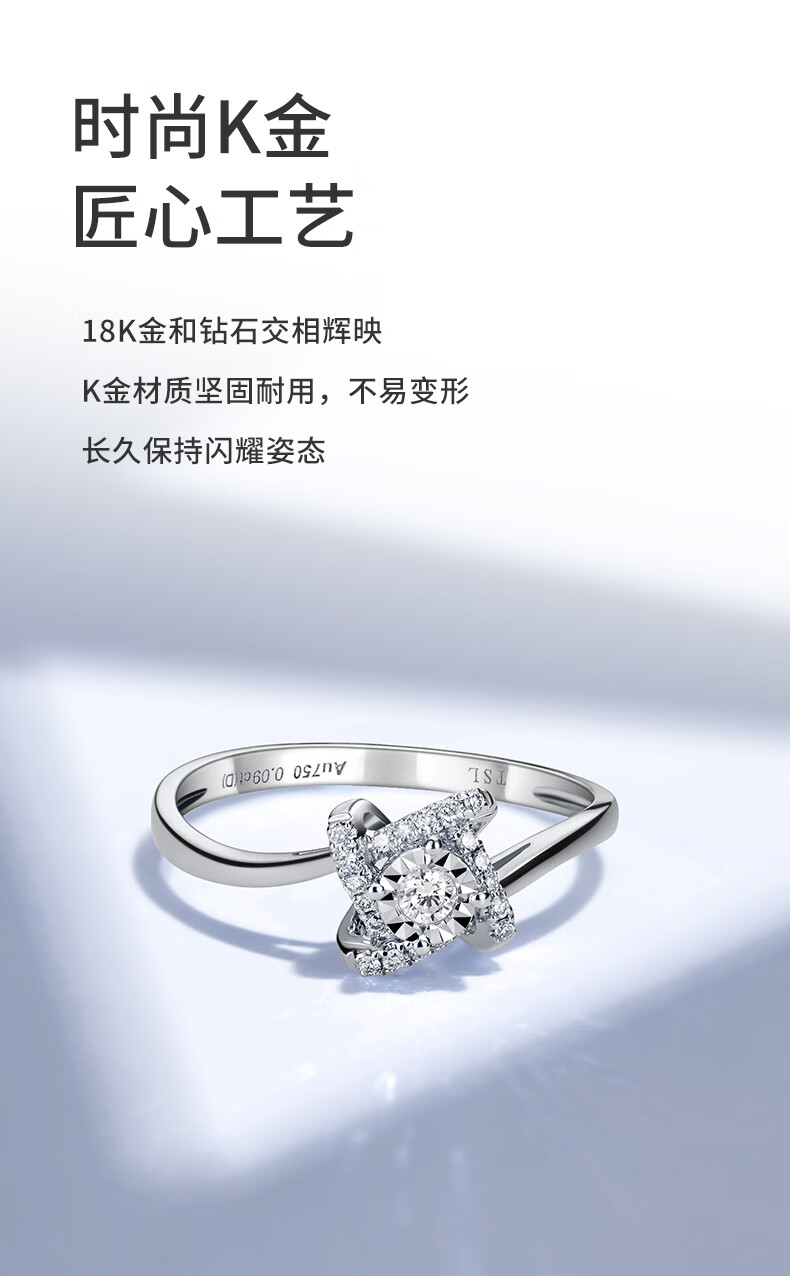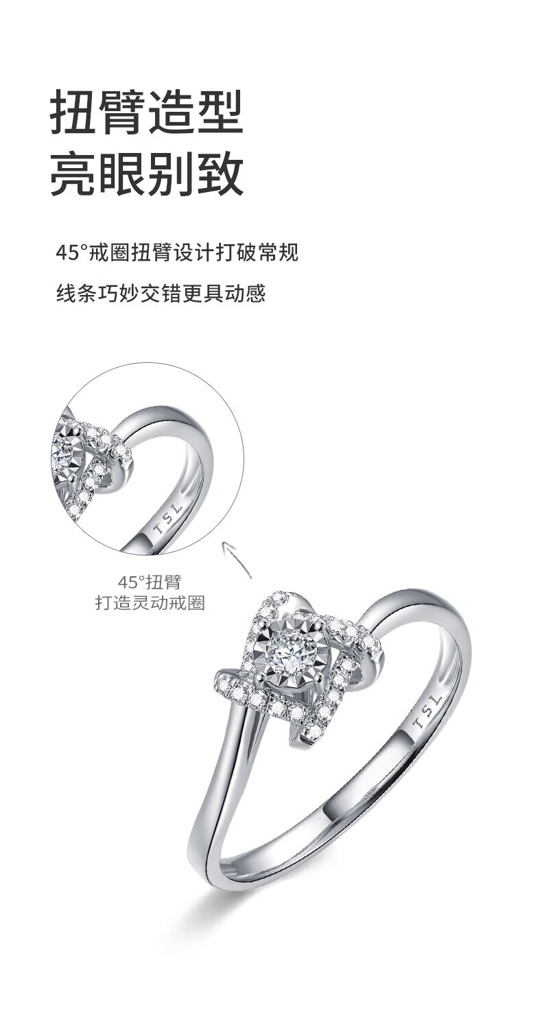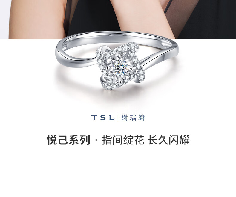 Xie Ruilin (TSL) 18K gold diamond ring group setting proposal engagement wedding platinum diamond ring for women 63235 11 circles (about 21 diamonds, about 7 minutes)
