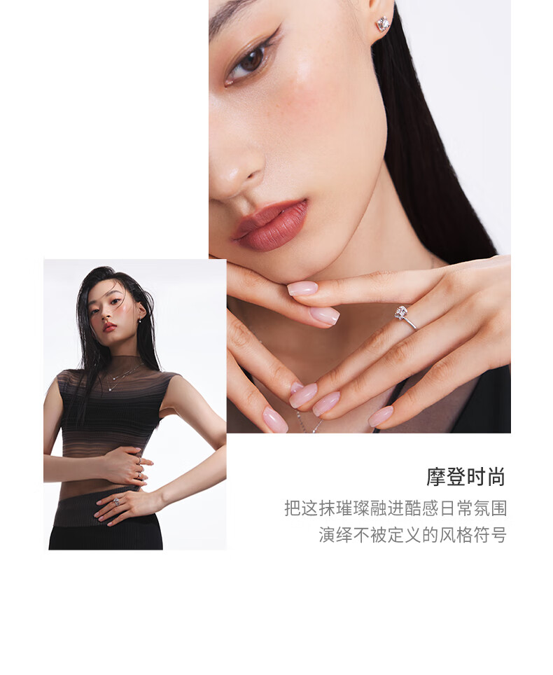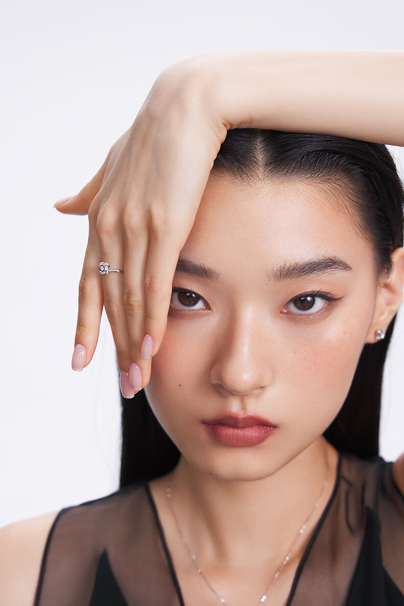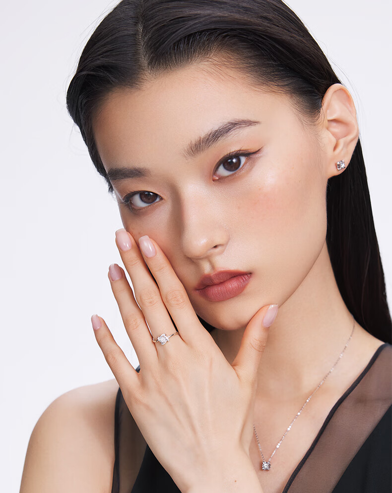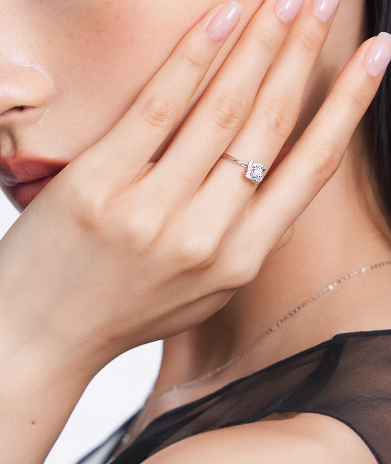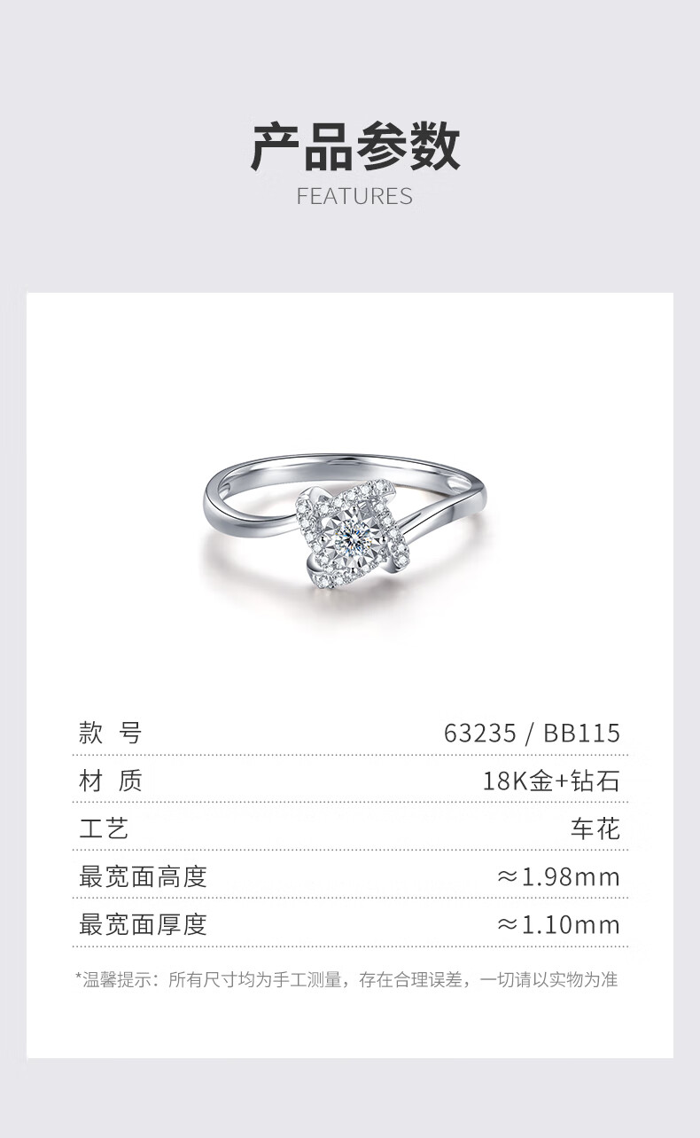 Xie Ruilin (TSL) 18K gold diamond ring group setting proposal engagement wedding platinum diamond ring for women 63235 11 circles (about 21 diamonds, about 7 minutes)