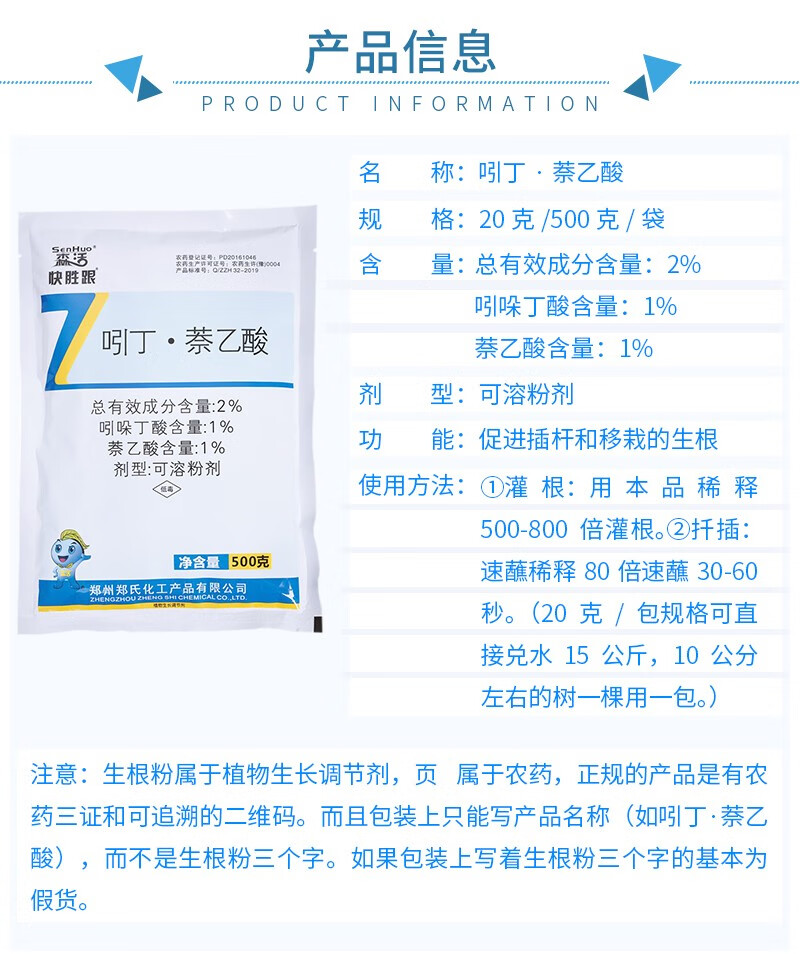 Senhuo Senhuo Kuaisheng and big tree transplanting rooting powder cuttings strong seedlings saplings fruit trees flowers general naphthalene acetic acid 500g bag