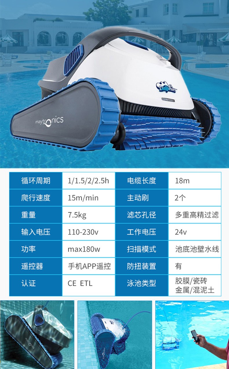 Maytronics Dolphin 2 2 fully automatic sewage suction machine swimming pool intelligent underwater cleaning robot underwater vacuum cleaner Dolphin 2x2 including swimming pool chemicals