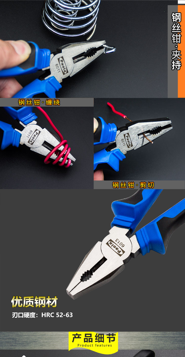 Paola wire pliers 8 inches multifunctional vise flat nose pliers wire cutter 6013