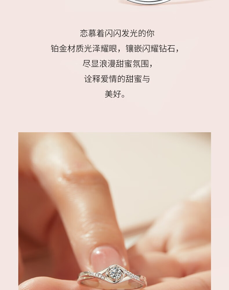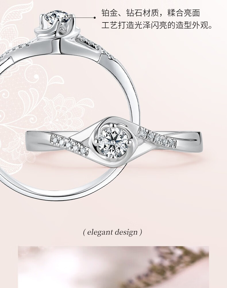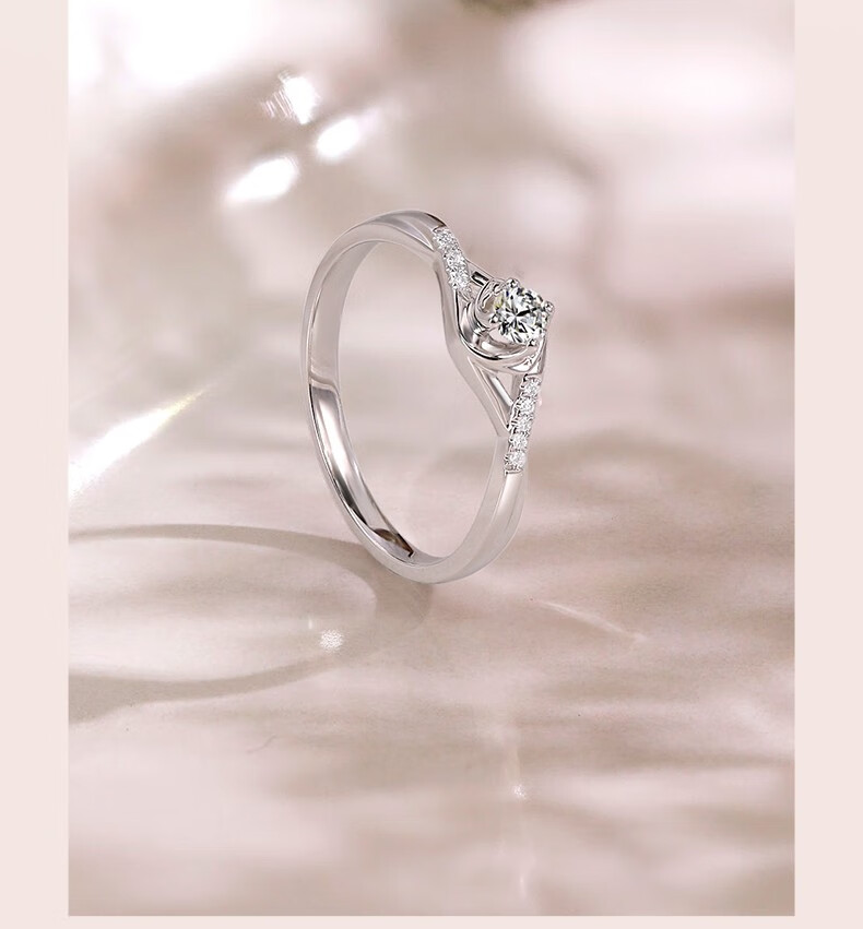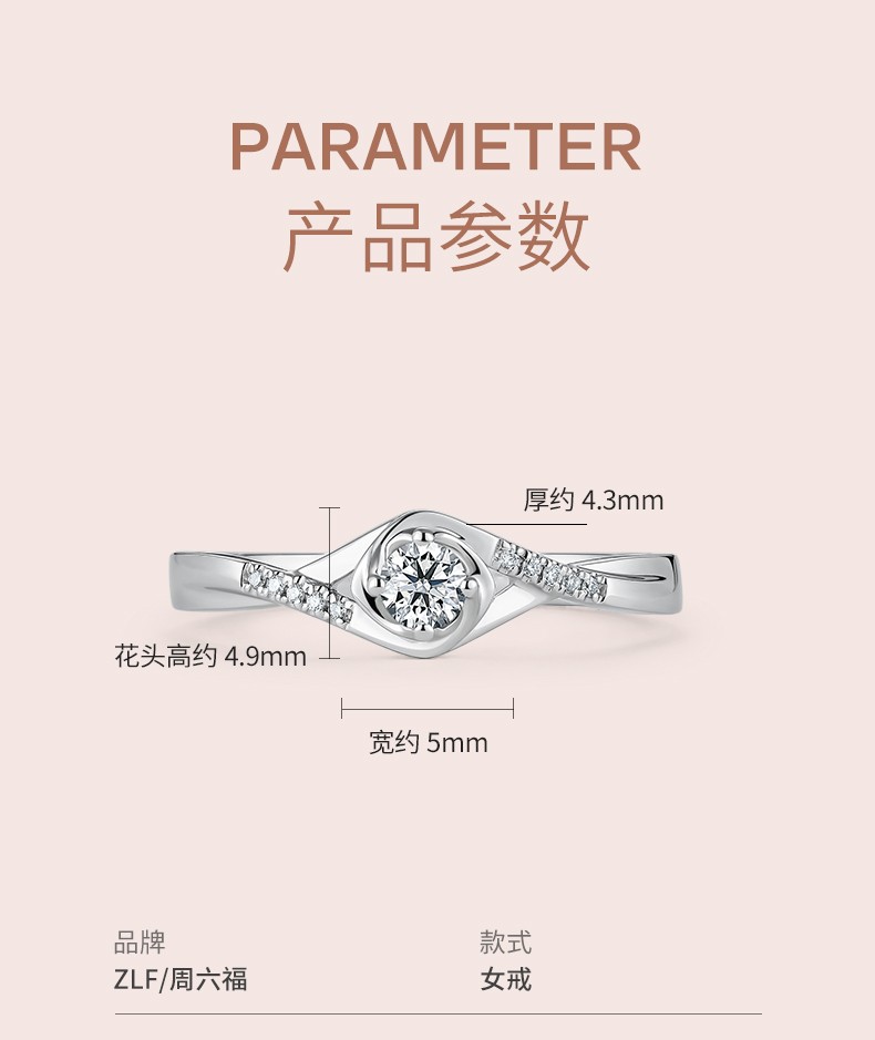 Saturday Fortune (ZLF) PT950 platinum diamond ring for women with four prongs and diamonds for proposal, engagement, and wedding diamond ring 10 points, size 10