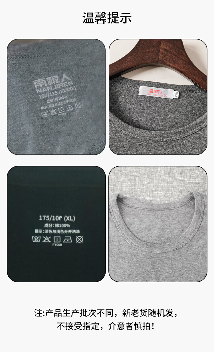 Nanjiren Men's Autumn Clothes and Autumn Pants Men's Pure Cotton Sweater Round Neck Comfortable Skin-Friendly Youth Antibacterial Anti-Mite Thermal Underwear Set Men-Navy Blue Top + Pants XL