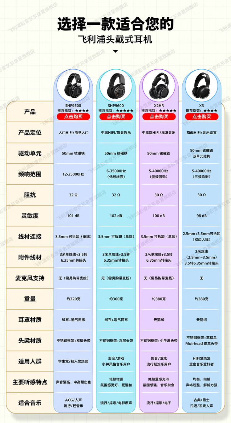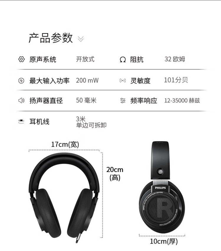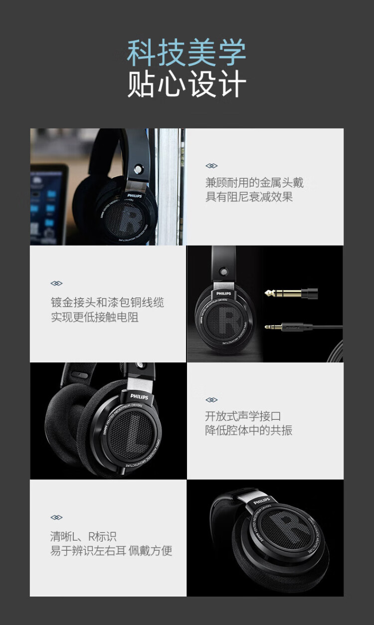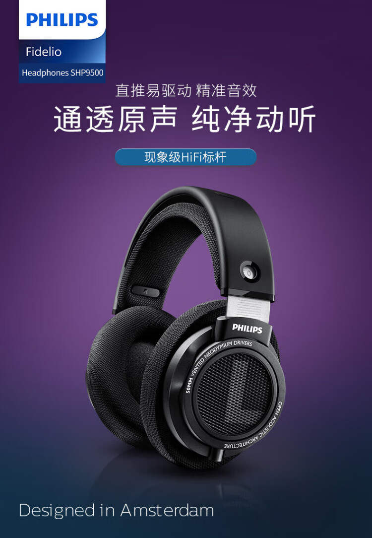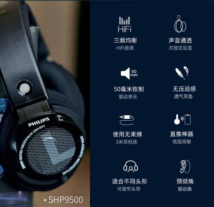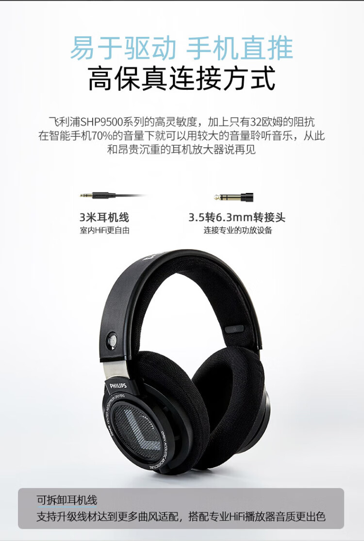 Philips (PHILIPS) head-mounted wired headphones hifi comfortable headphones monitoring grade music learning entertainment e-sports game computer Double 11 Double Eleven Apple Xiaomi Huawei mobile phone SHP9500