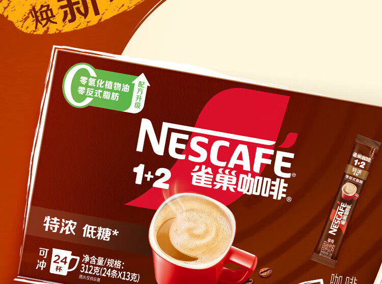 Nestlé Fan Zhendong's same style 1+2 extra strong low sugar* instant coffee three-in-one brewed drink 24 bars 312g