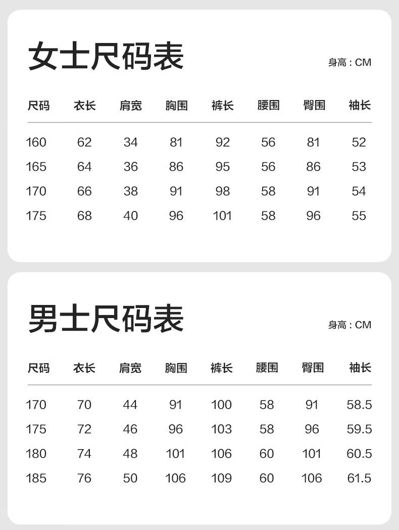 China (cm) 160-165/84-86 165-170 / 88-90 167-172 / 92-96 168-173 / 98-102 170-176 / 106-110