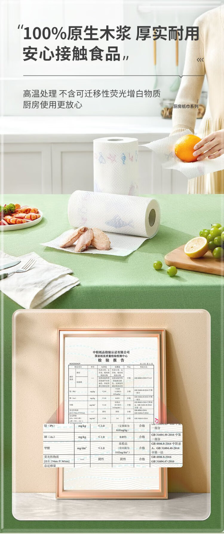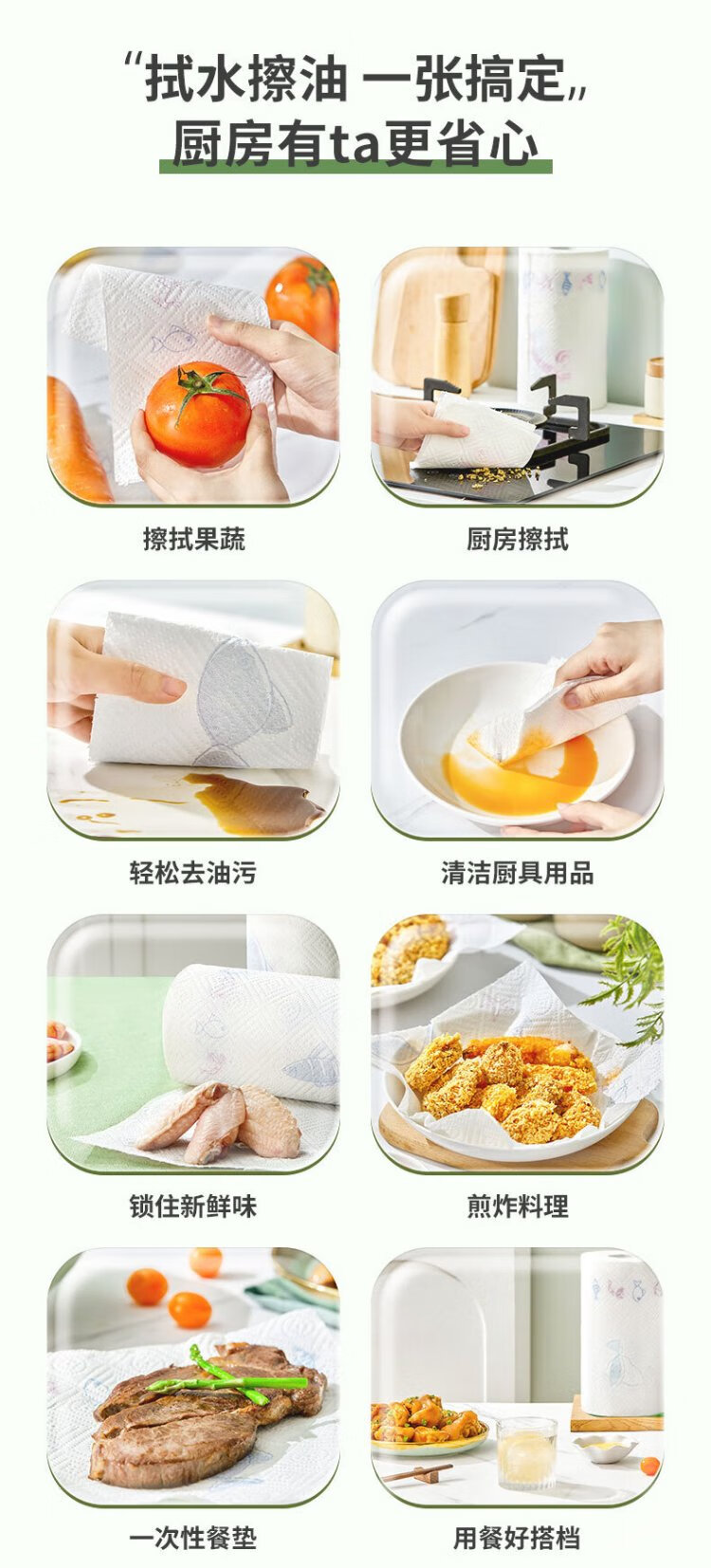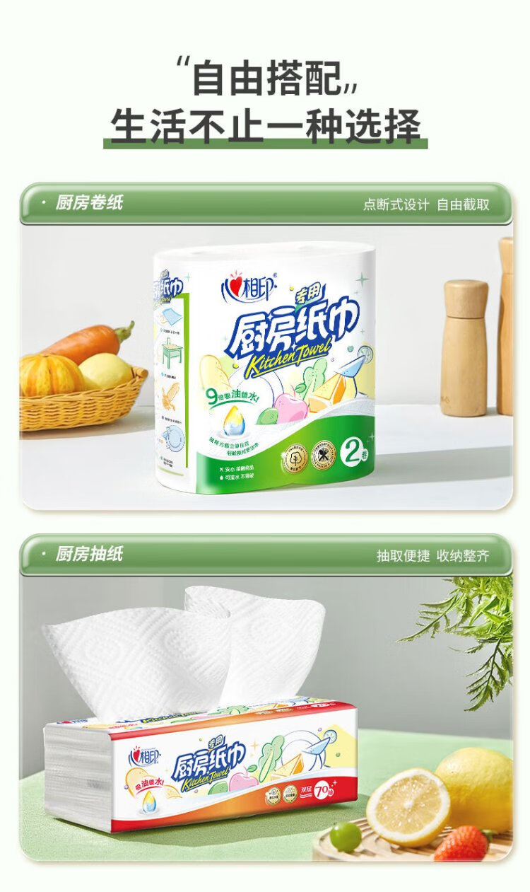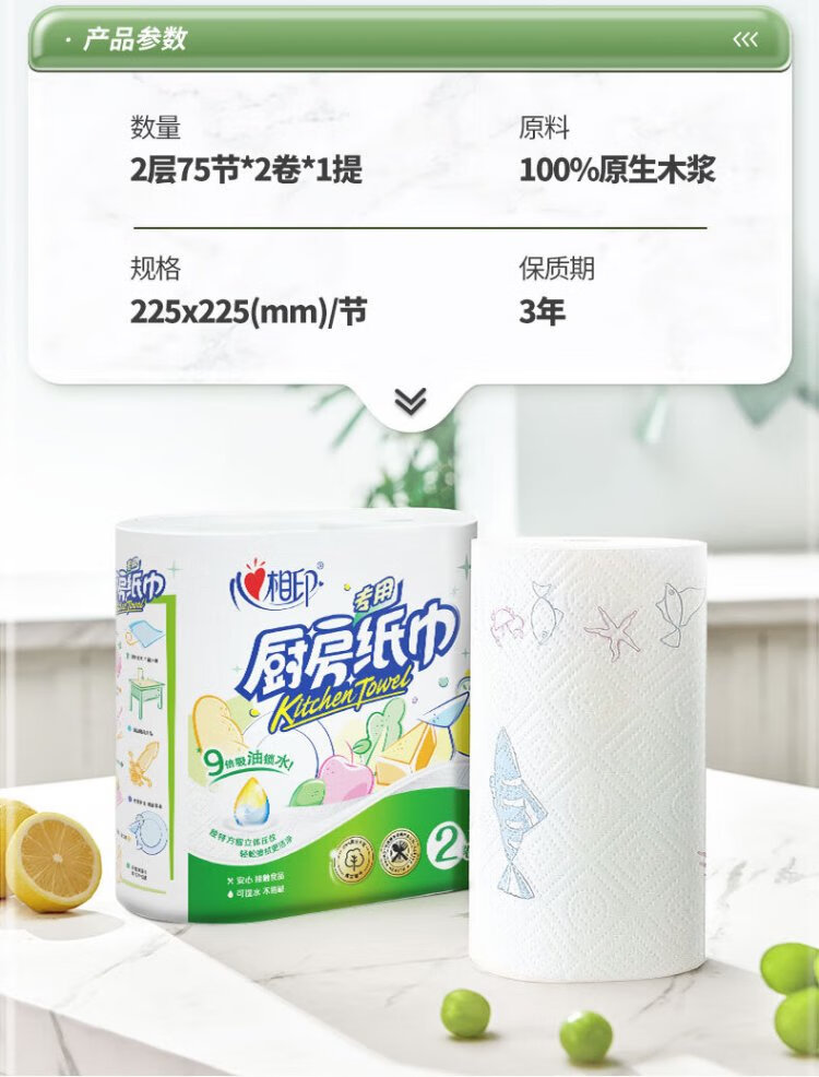 Xinxiangyin roll paper/kitchen paper 150 sections, oil-absorbing and water-locking paper towel, food contact grade