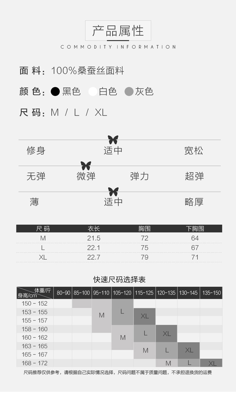 Jinsanta tube top 100% mulberry silk anti-exposure strap tube top with chest pad 2NZF4B405 gray with chest pad L