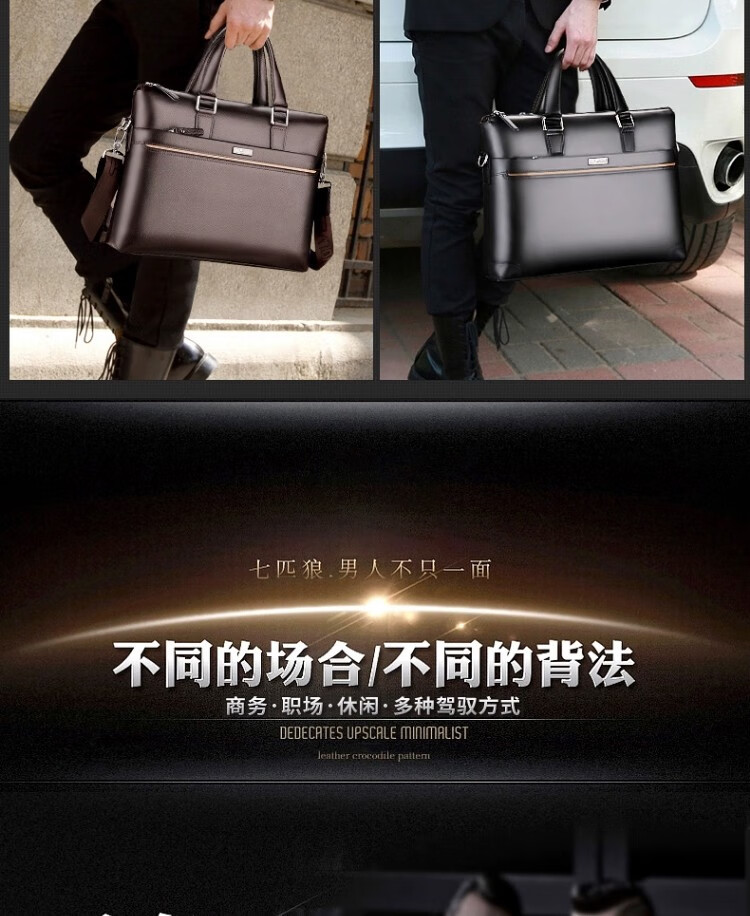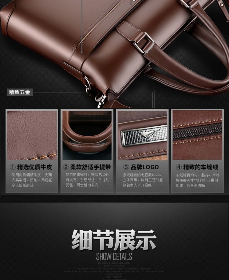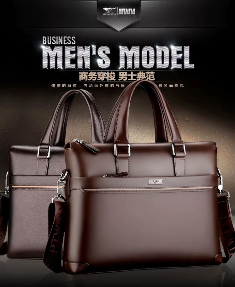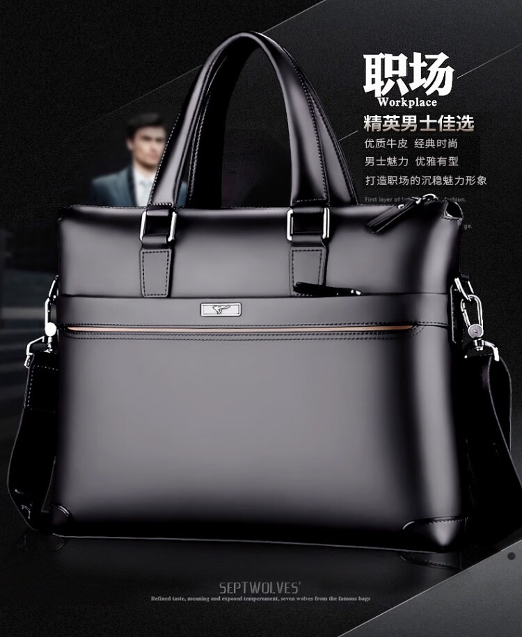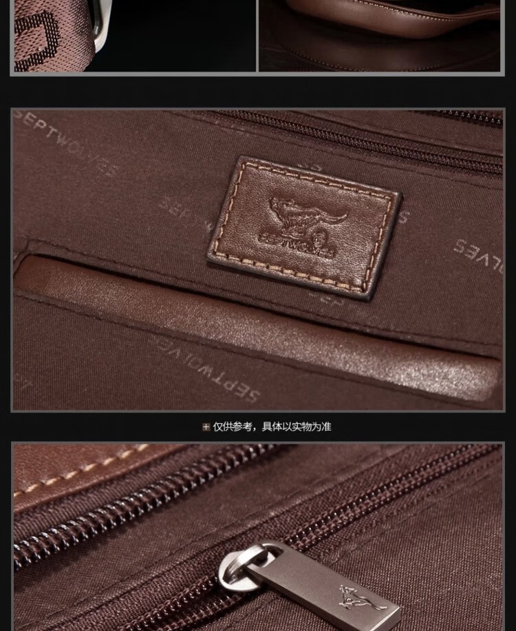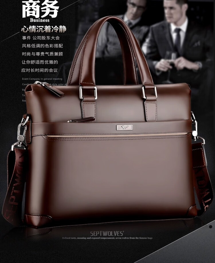 Septwolves Genuine Leather Business Handbag Crossbody Men's Bag Shoulder Bag Men's Cowhide Briefcase Leather Bag for Father's Day Gift Main Picture Litchi Pattern Genuine Leather Dark Brown Genuine Leather