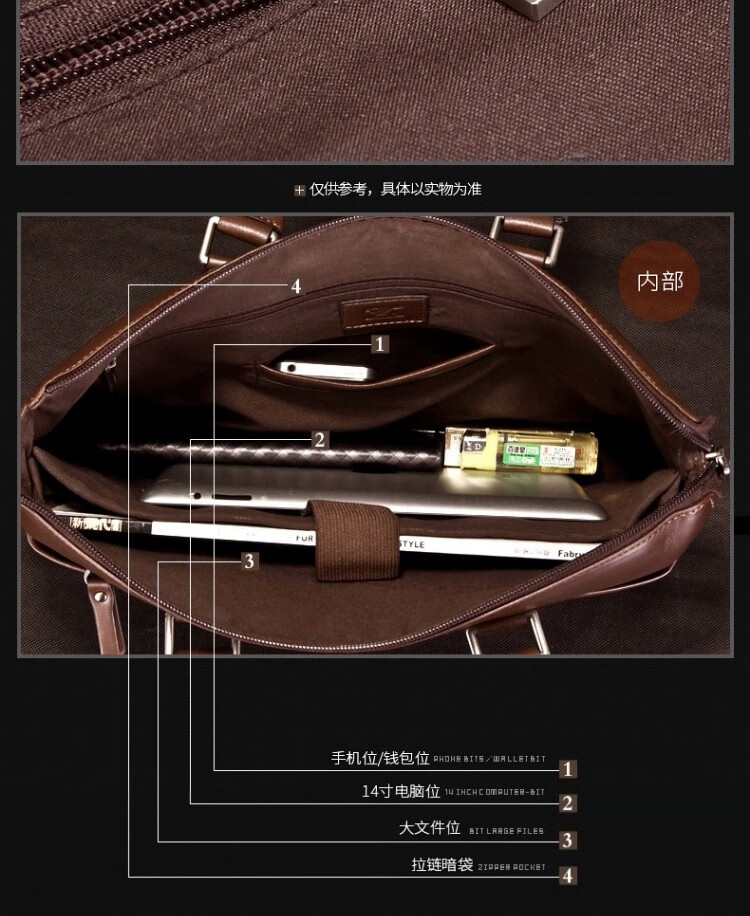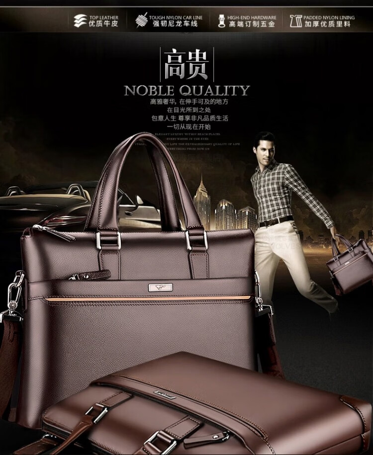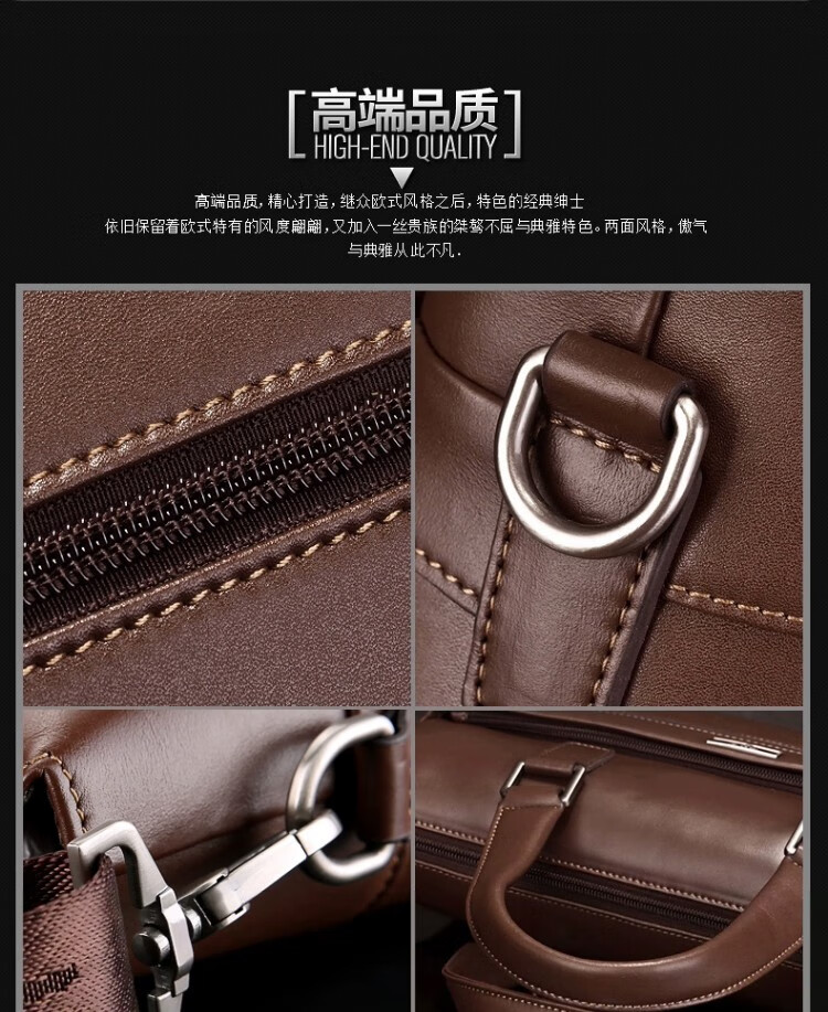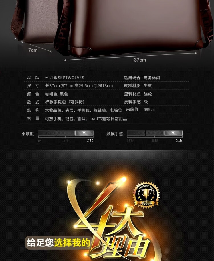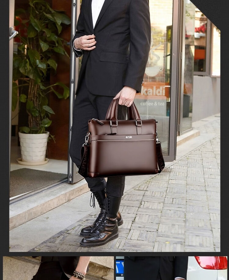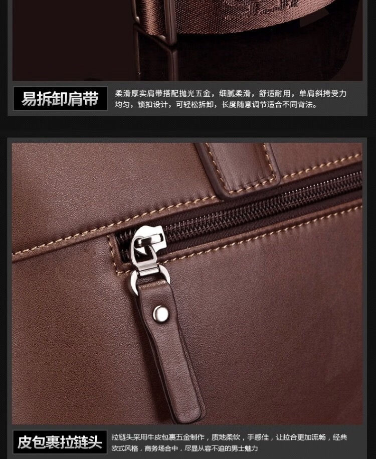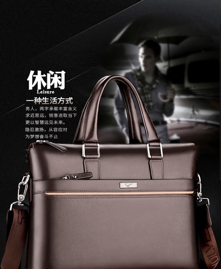 Septwolves Genuine Leather Business Handbag Crossbody Men's Bag Shoulder Bag Men's Cowhide Briefcase Leather Bag for Father's Day Gift Main Picture Litchi Pattern Genuine Leather Dark Brown Genuine Leather