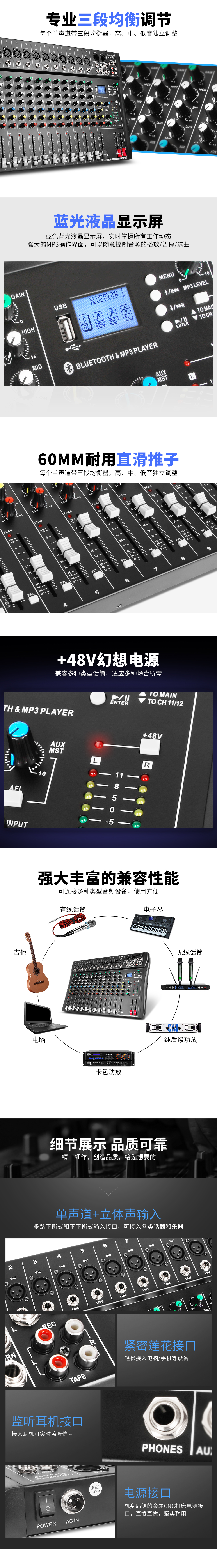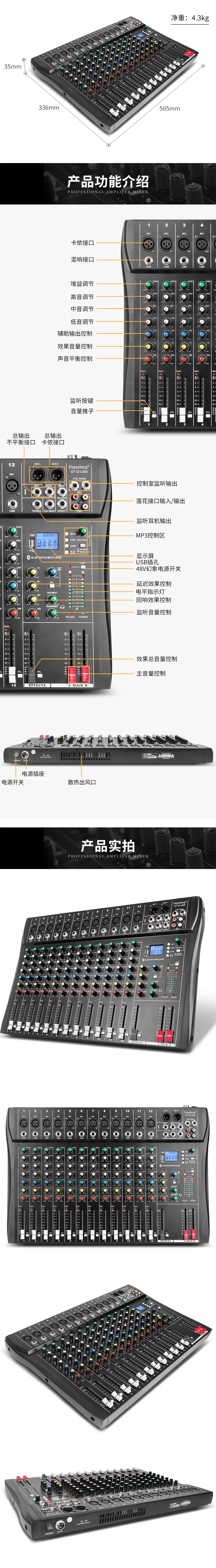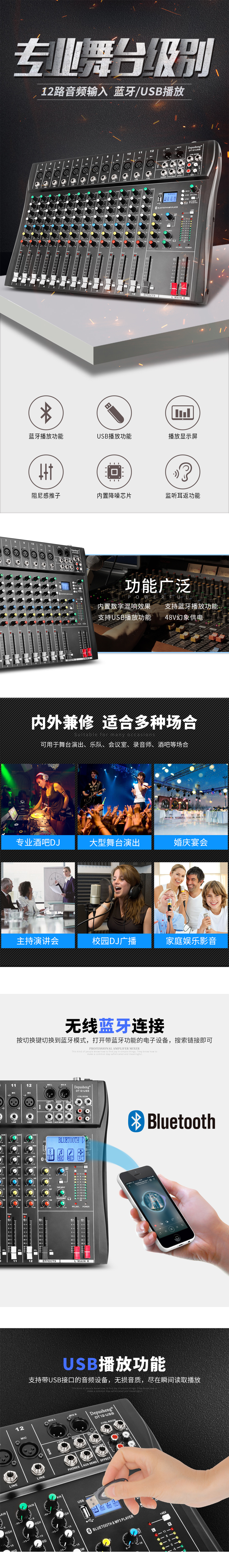 DepushengDepusheng DT12 professional mixer 12-way mixer stage performance conference audio USB with Bluetooth reverb wedding mixer professional 12-way mixer