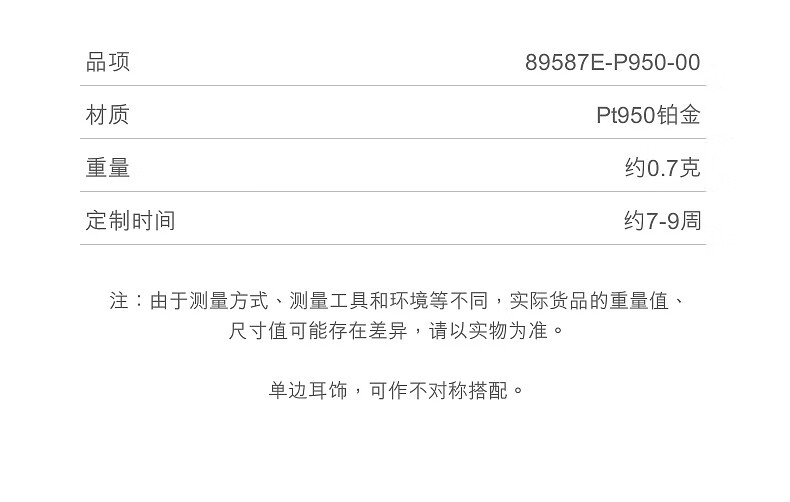 Chow Sang Sang Pt950 platinum moon single ear wire platinum earrings for women 89587E