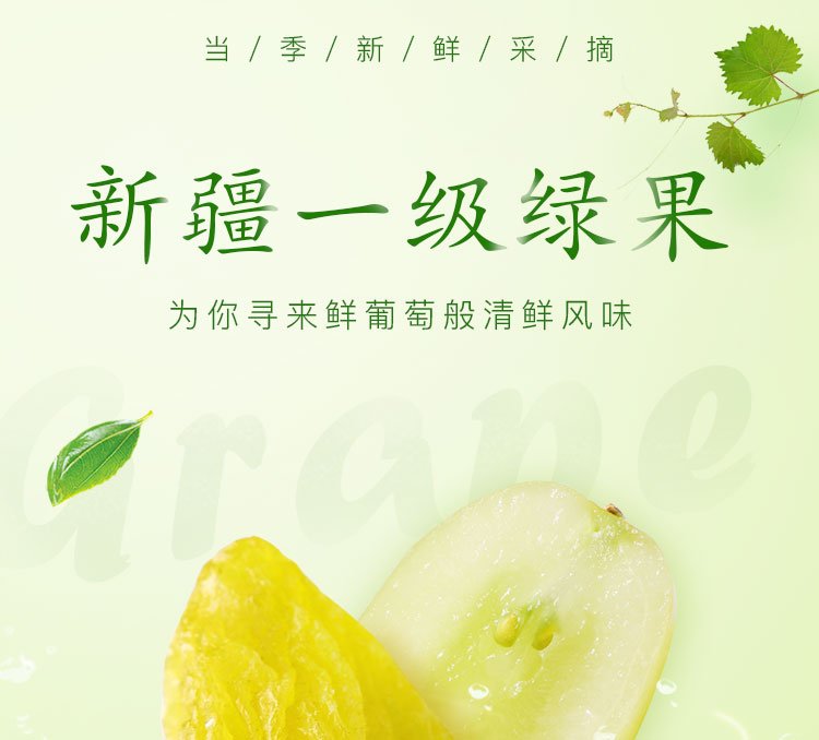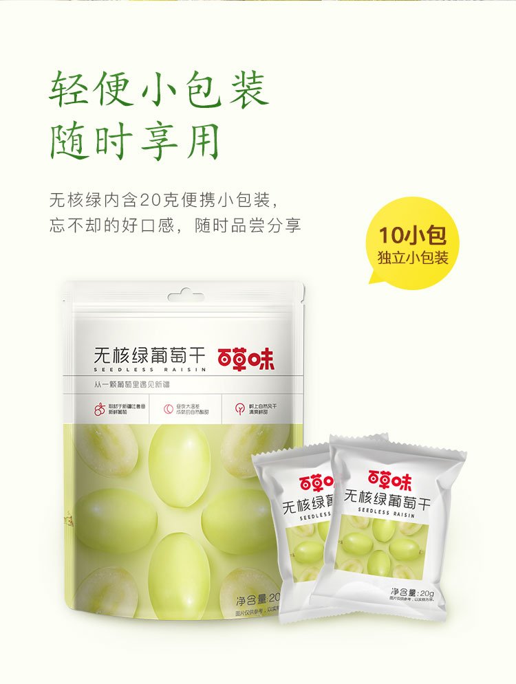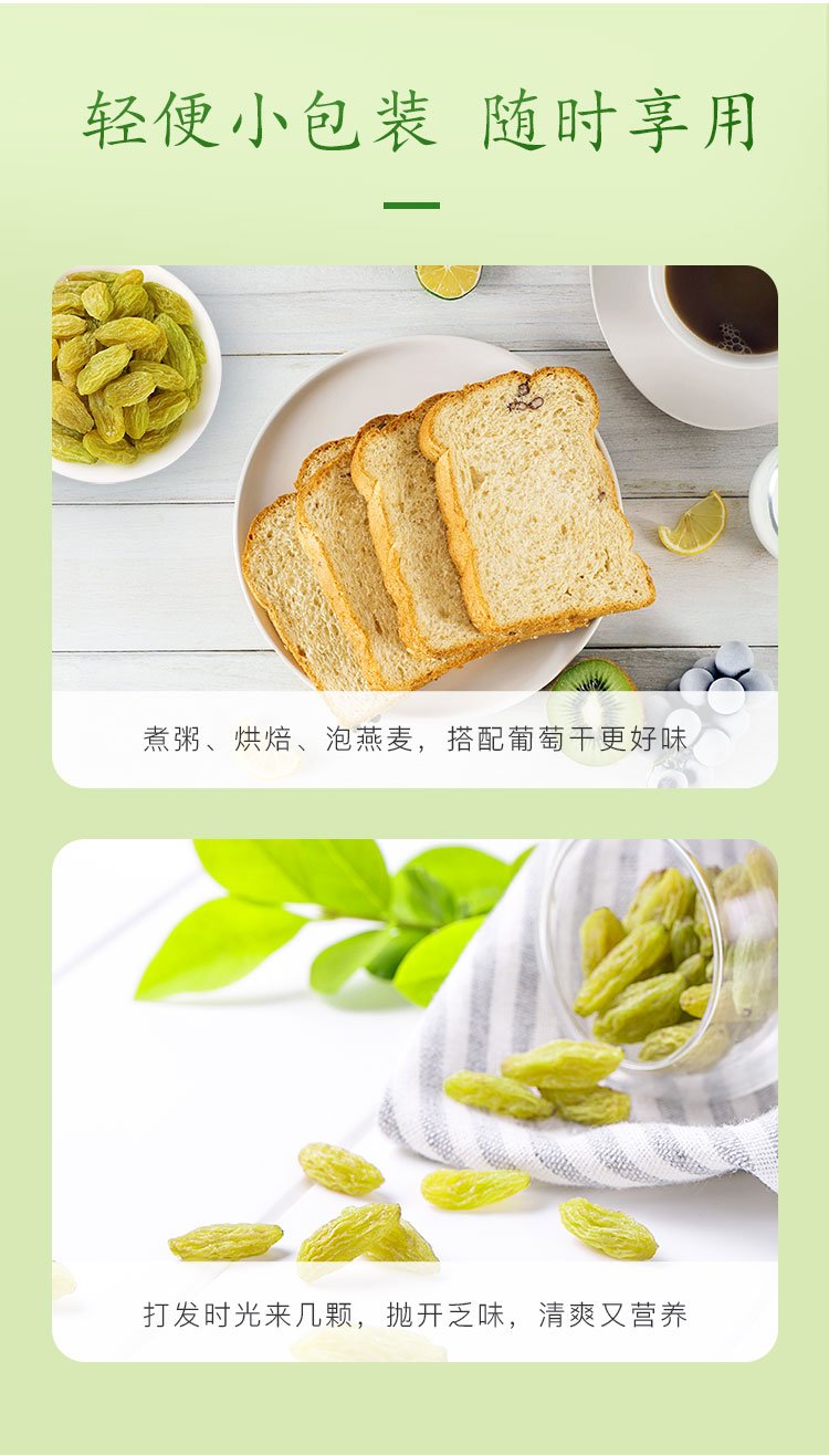 Baicao flavor raisins 200g/bag Xinjiang Turpan specialty candied fruit dried green raisins snack baking
