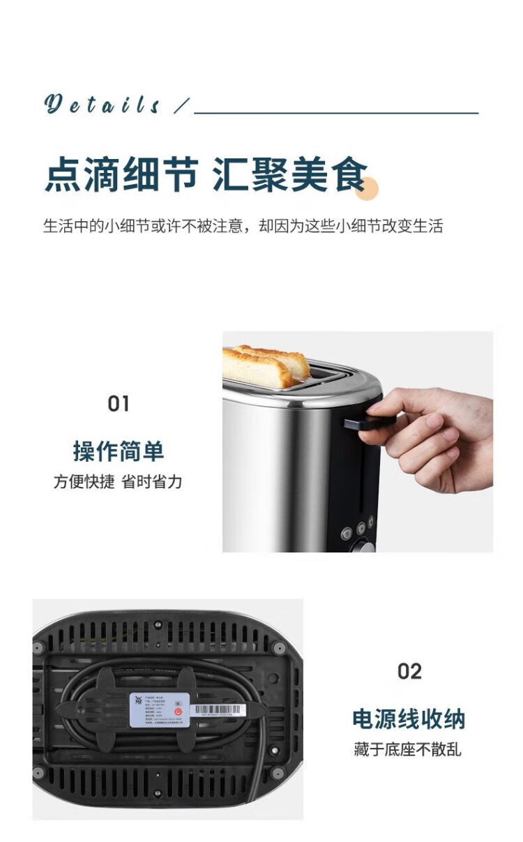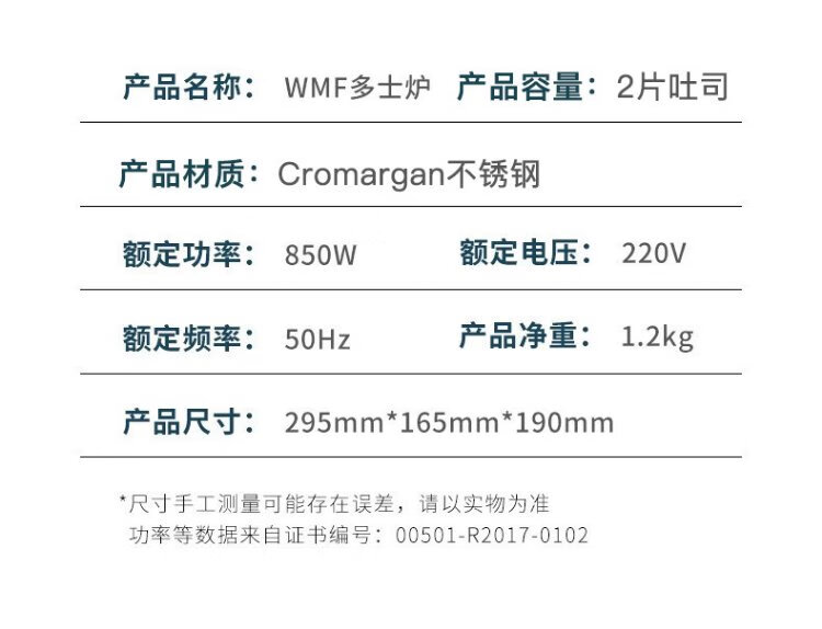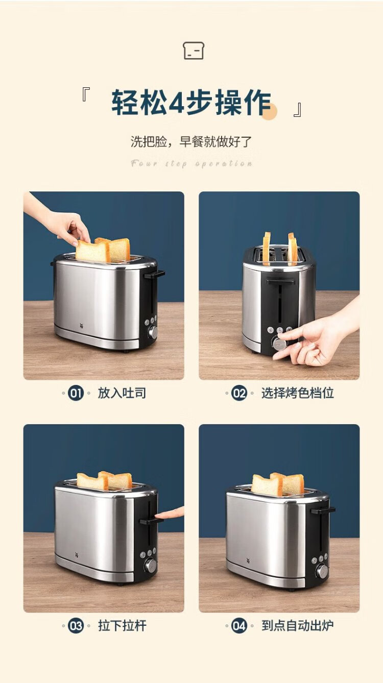 WMF German Fortenbao toaster toasted bread slices household stainless steel toaster toaster 7-speed double-sided baking toaster