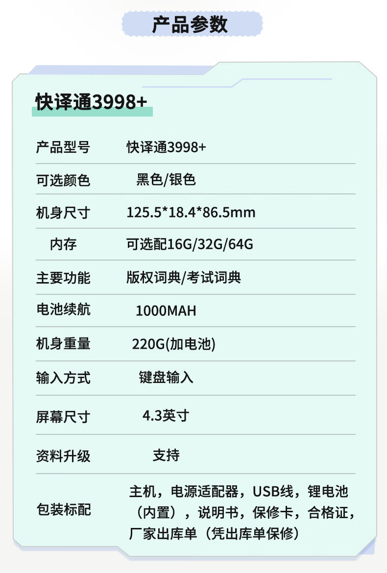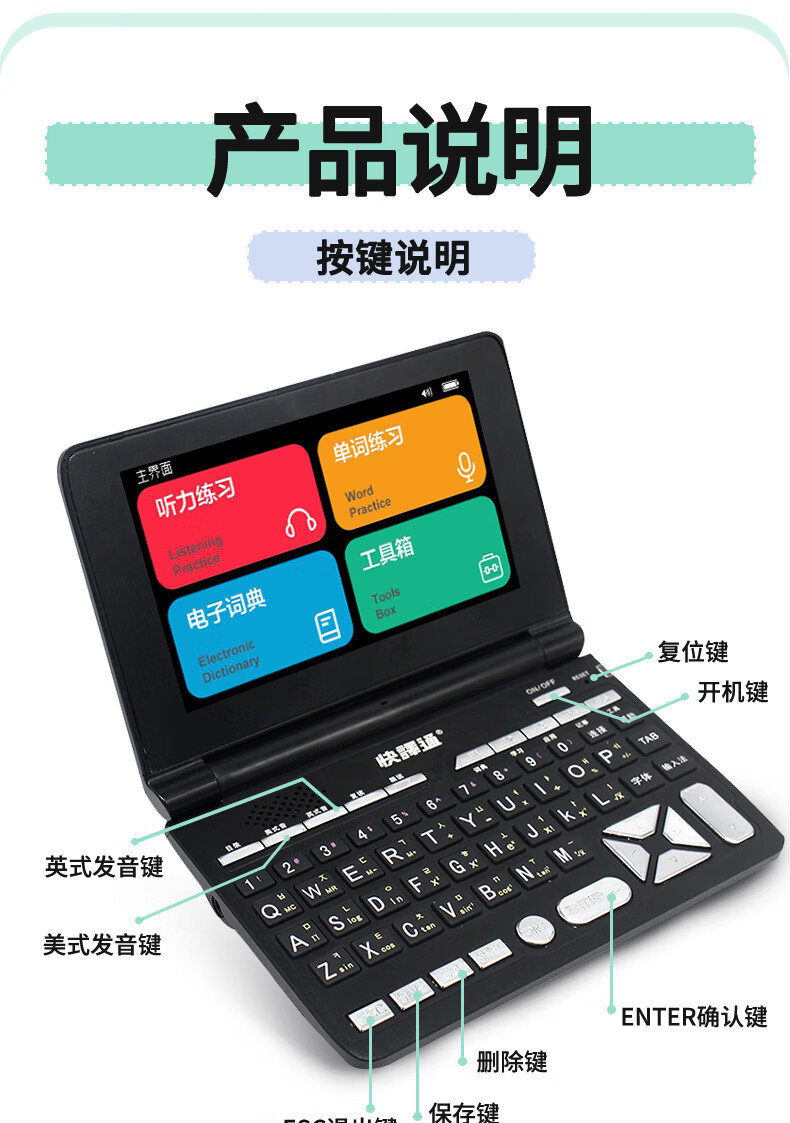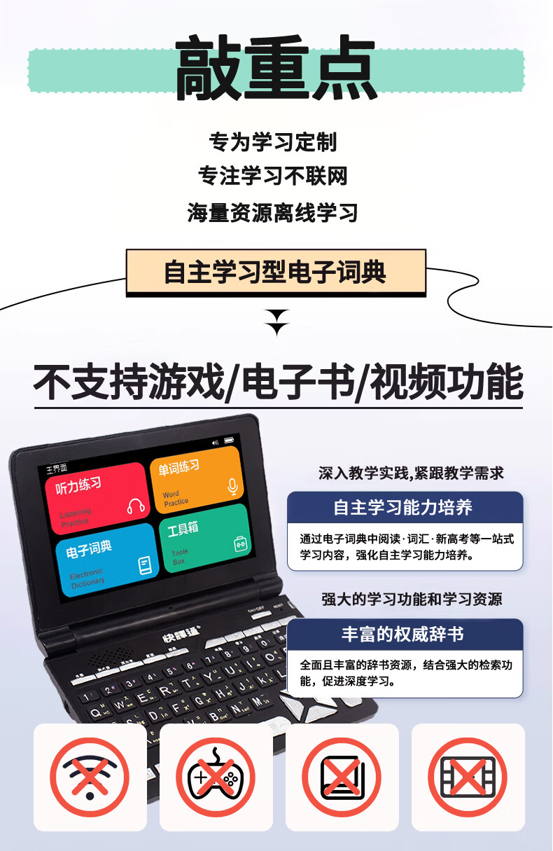 Kuaiyitong student English electronic dictionary learning machine for primary school junior high school students offline back-checking word artifact Longman advanced English-Chinese bilingual dictionary translator without games can be brought to school Space Silver HD screen upgraded version 16G Longman version