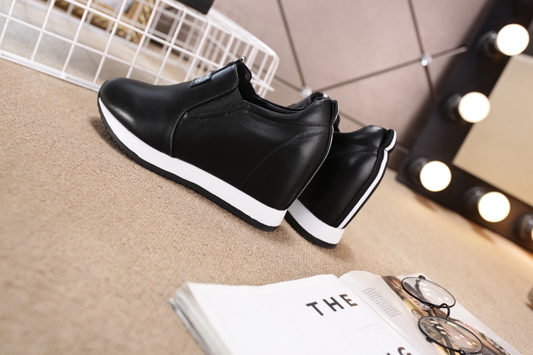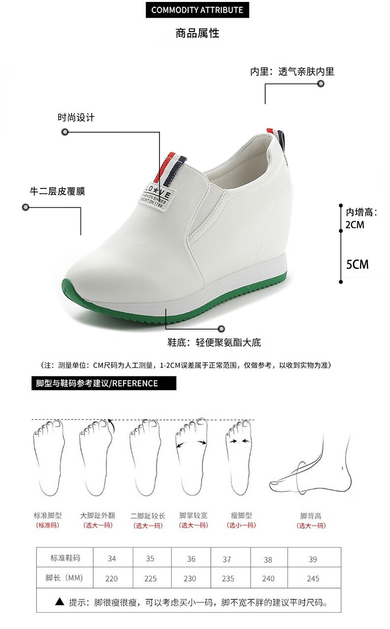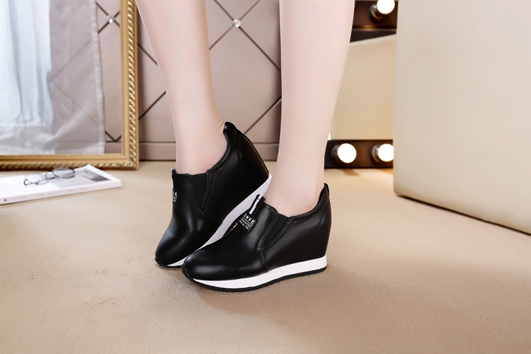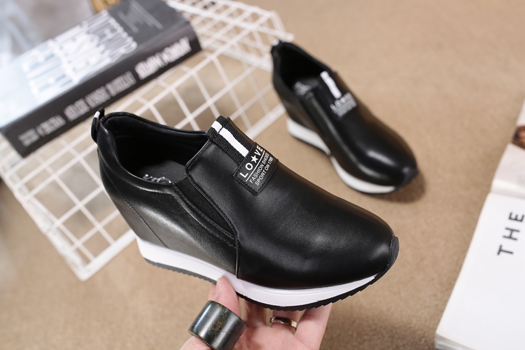 Lairan casual shoes, height-increasing women's shoes, wedge dance shoes, thick-soled sports white shoes, 2025 spring and autumn new shoes, black 36