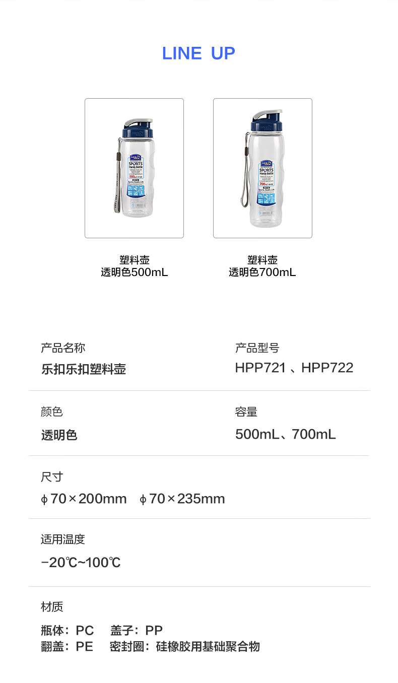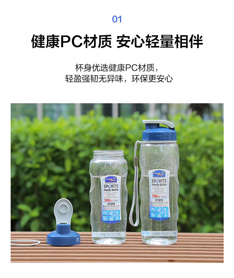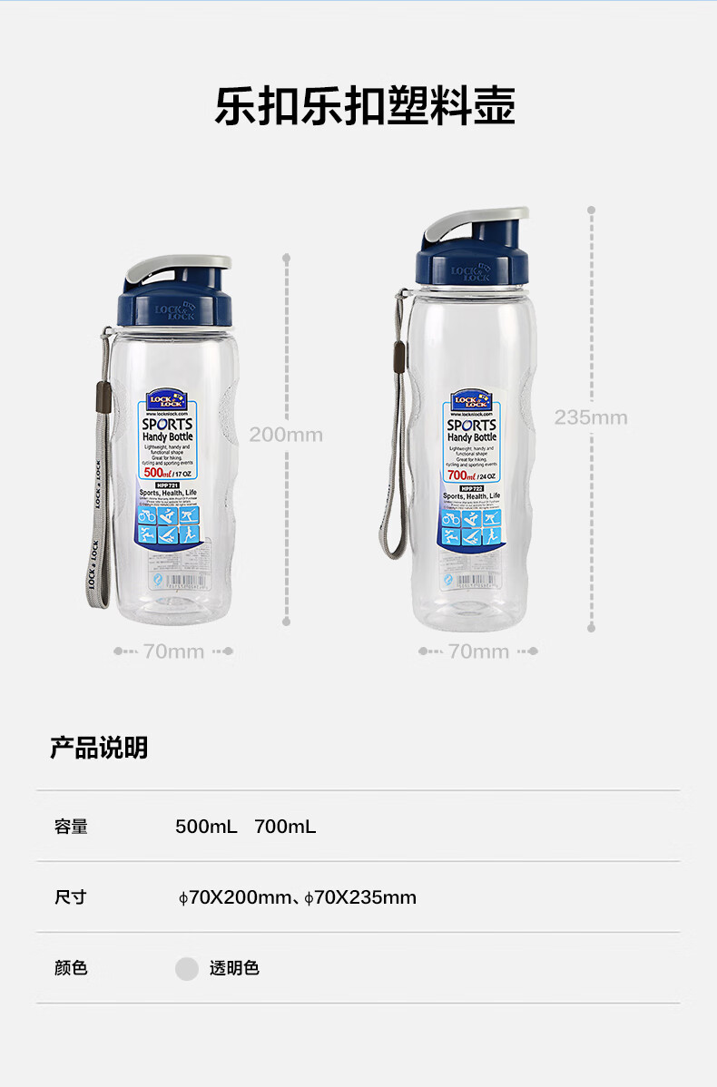 LOCK & LOCK summer plastic water cup outdoor portable rope water cup portable large-capacity plastic pot 700ML transparent