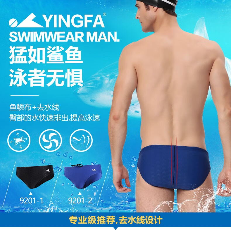 YINGFA Men's Swimming Briefs with Drainage Line Professional Competitive Swimming Briefs 9201 Blue M
