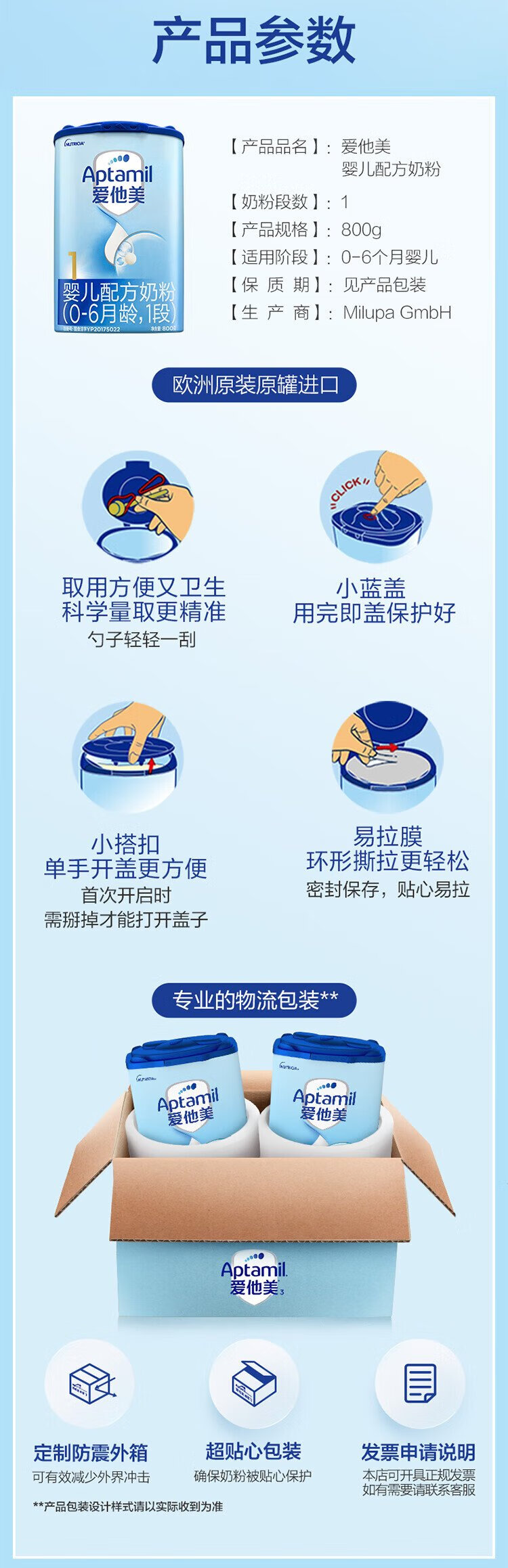 Aptamil infant formula (0 to 6 months old, stage 1) 800g