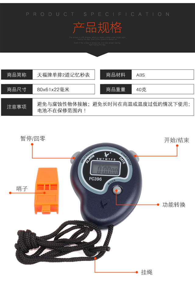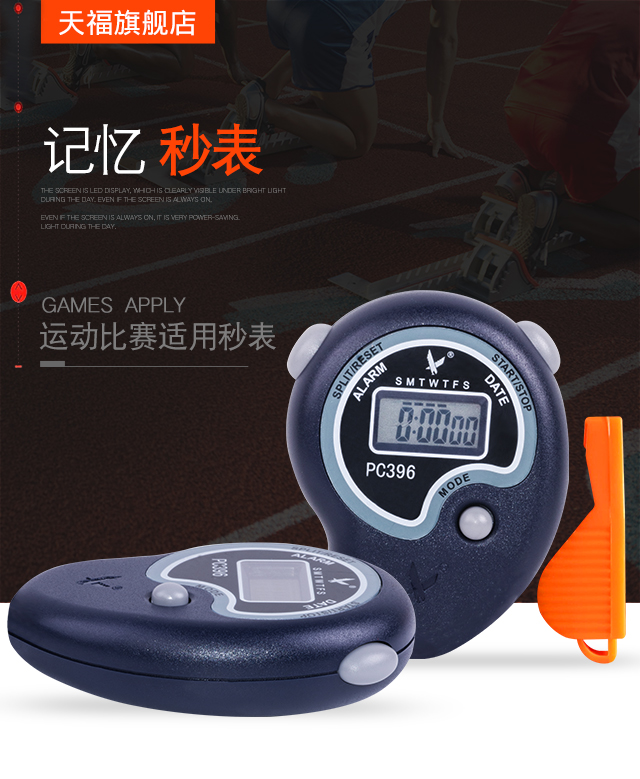 Tianfu stopwatch timer multifunctional running electronic stopwatch sports track and field training competition professional stopwatch student coach single row 2 lanes free whistle battery PC396