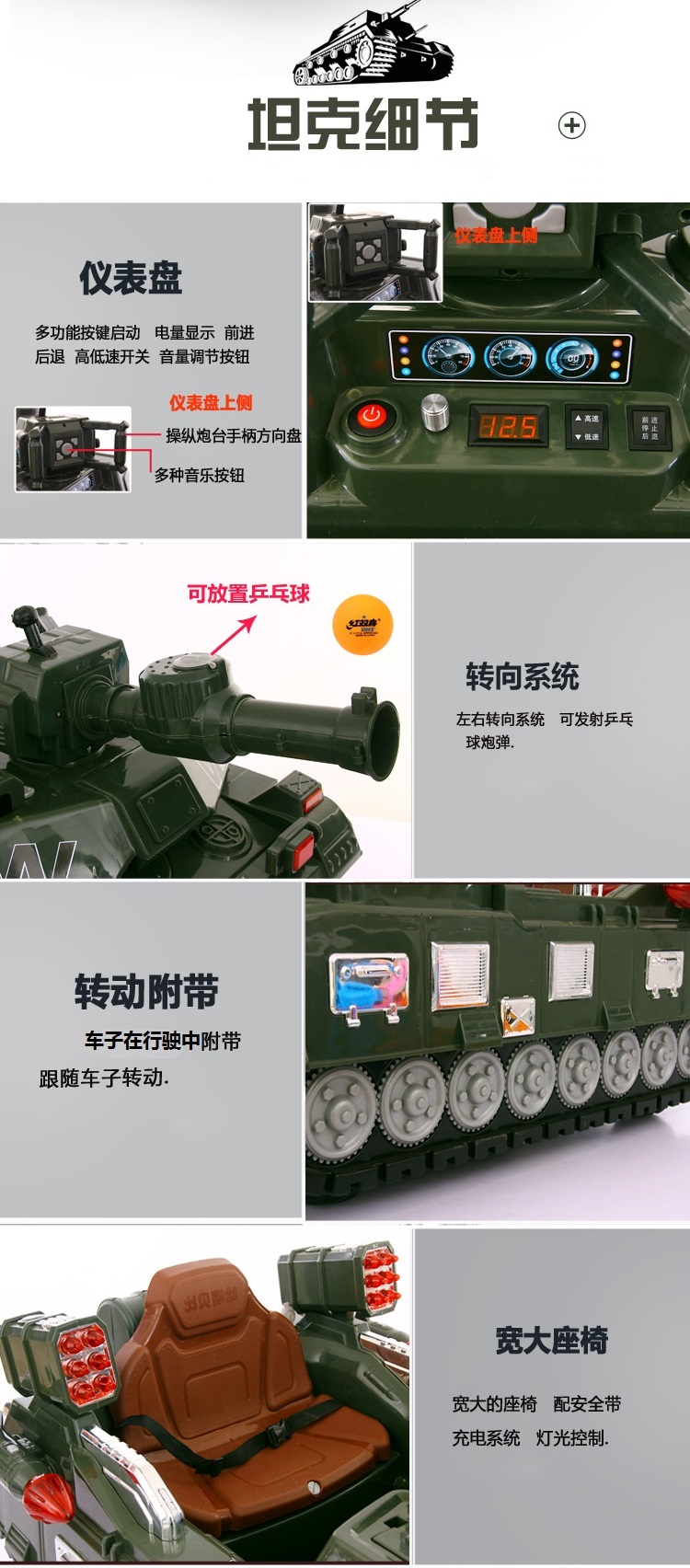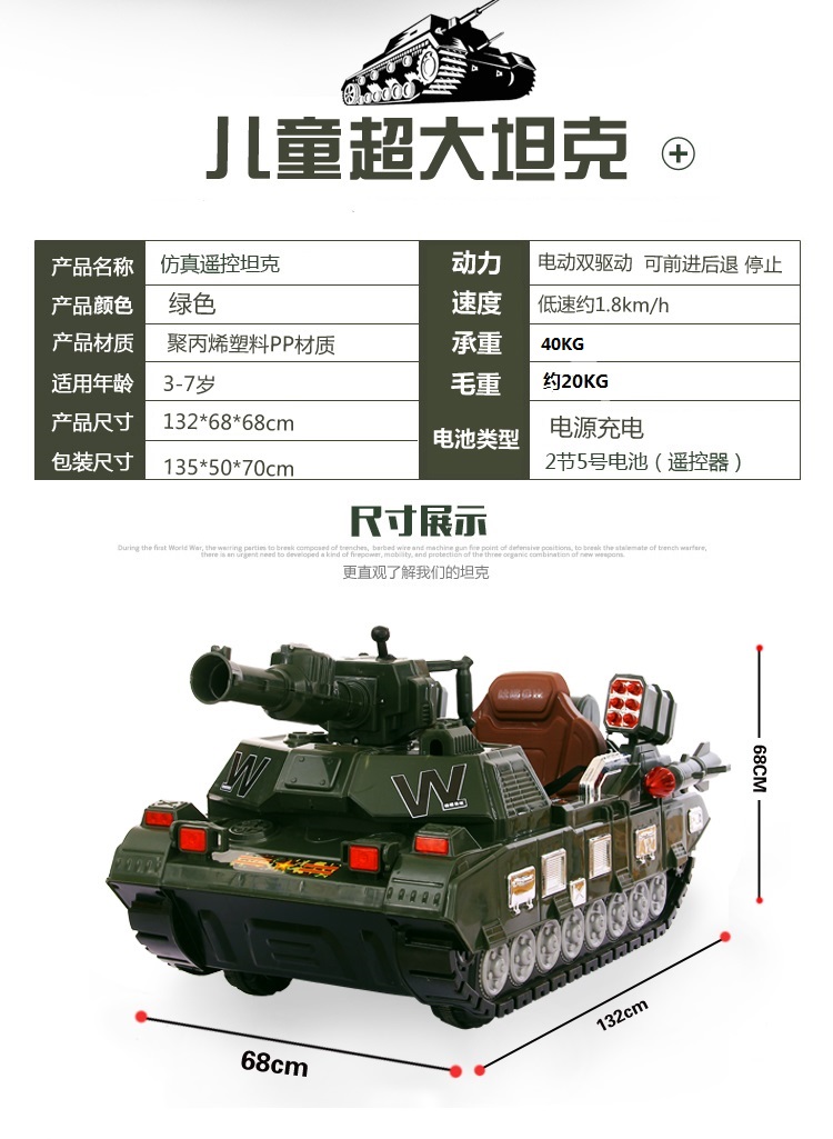 Qiyu children's electric car, tank type, children's electric car that can sit on people, electric toy car, four-wheel dual-drive charging remote control car, military green remote control, early childhood education lamp with large battery