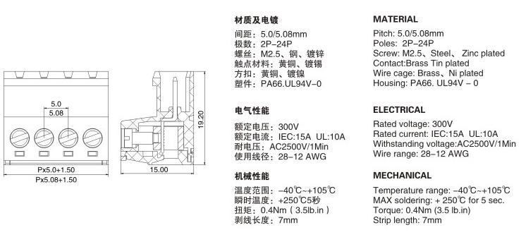 TaoTimeClub solder-free plug-in terminal block KF2EDG5.08 pitch 5.08M 8P 1 set