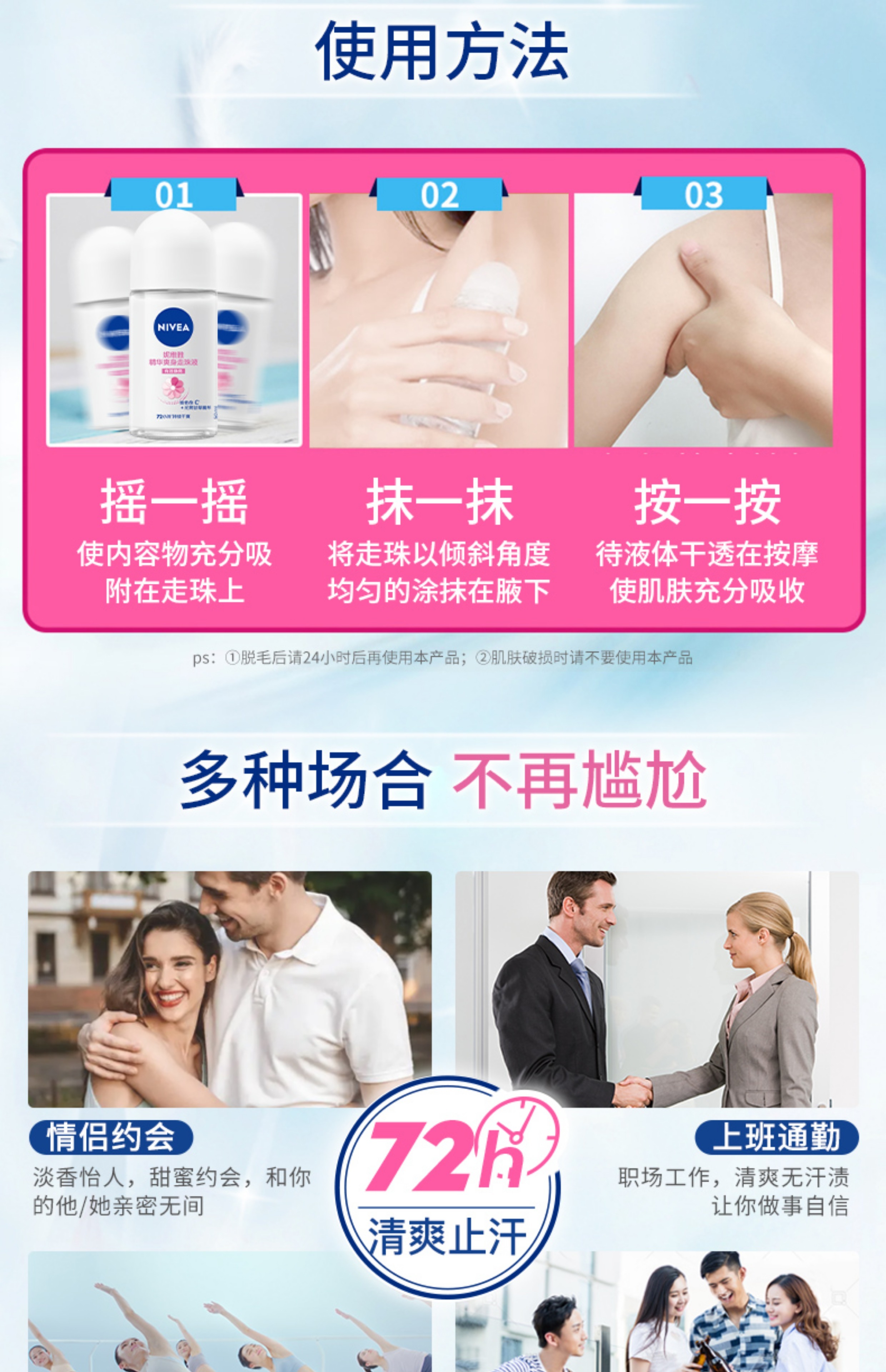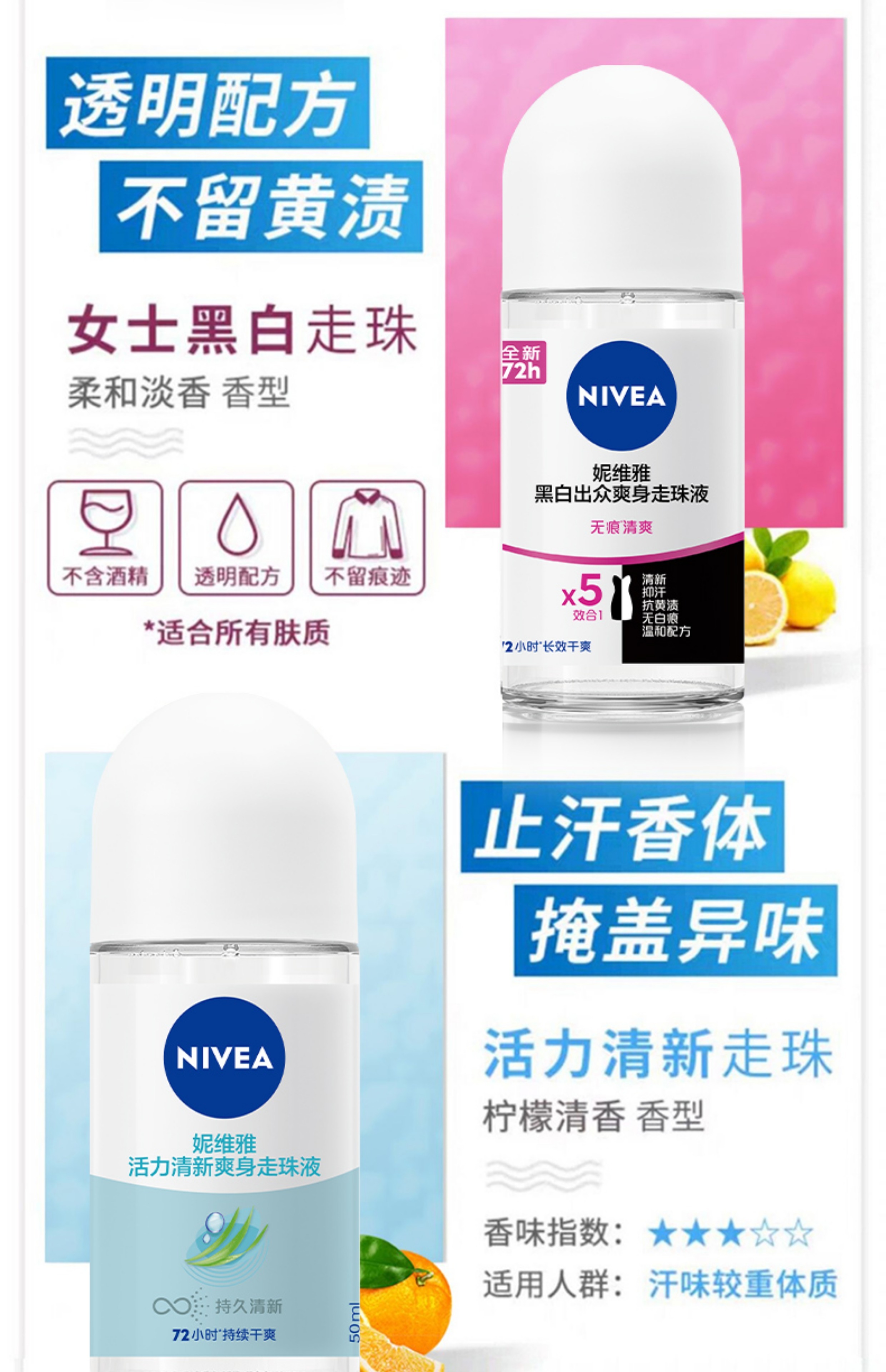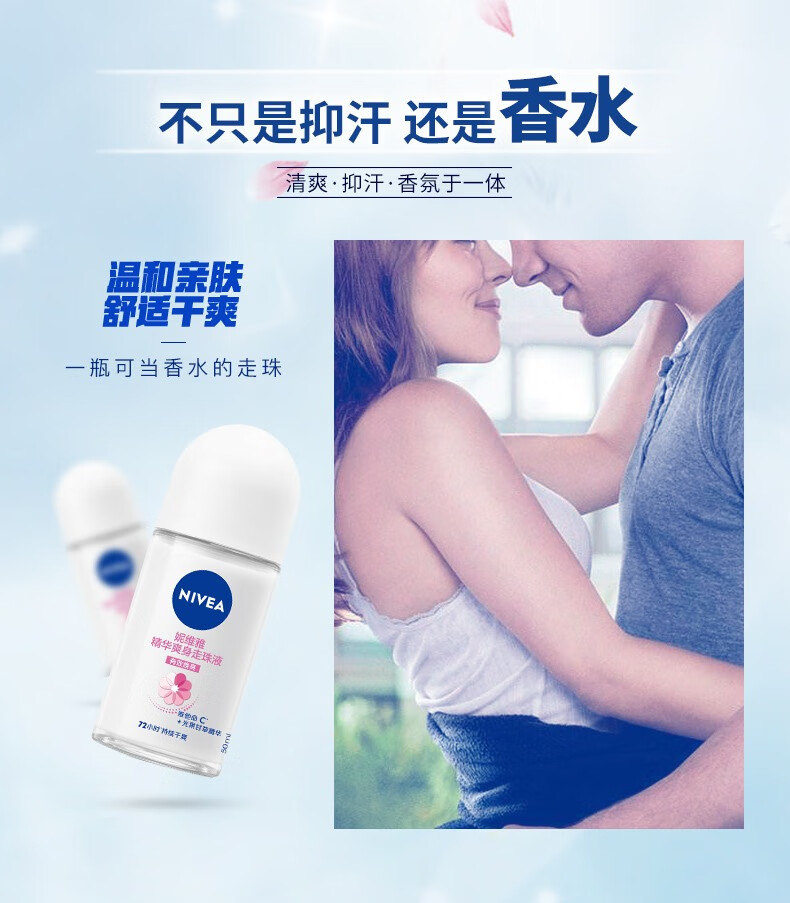 Nivea (NIVEA) antiperspirant deodorant roll-on liquid spring and summer armpit anti-perspirant fresh perfume roll-on liquid for men and women can be used as perfume. Women recommend elegant floral fragrance 50ml