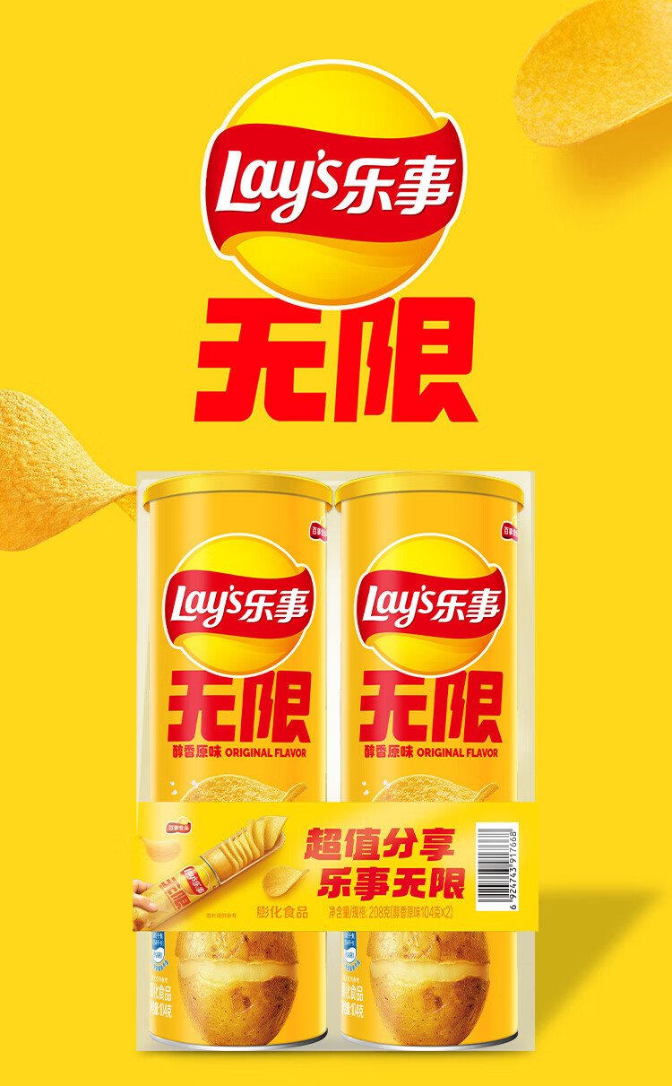 Lay's unlimited potato chips, original flavor, 104g*2 cans, 208g, snacks, puffed food