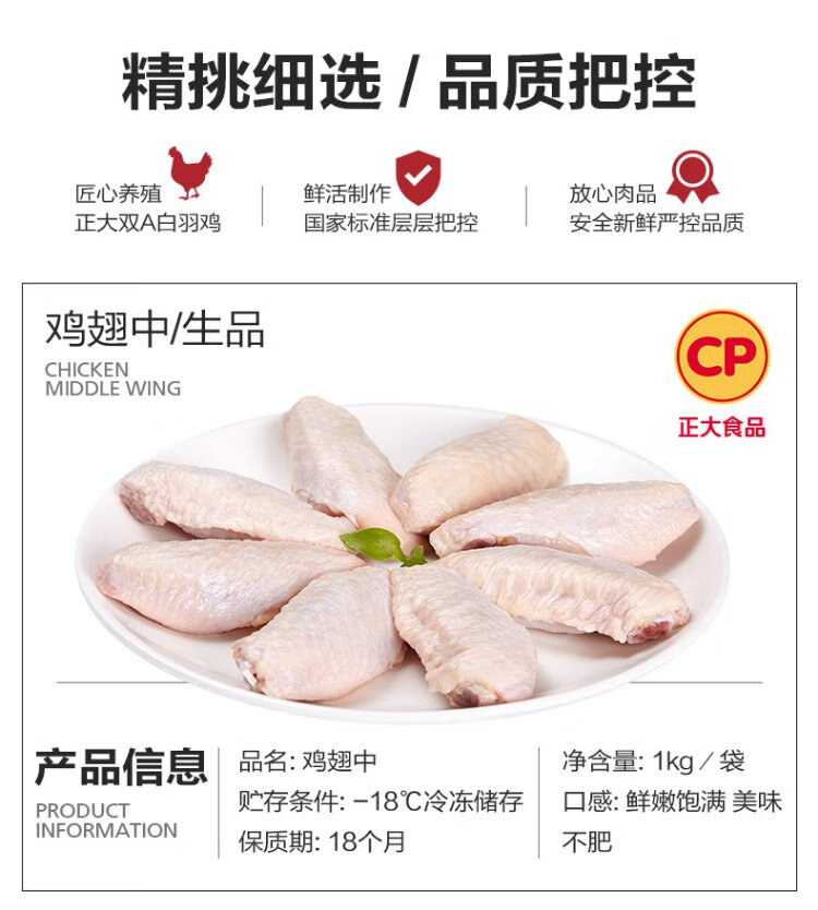 2Jin Jin in CP Zhengda Food's large chicken wings is equal to 0.5 kg. About 30-40g in a single wing. Net weight of chicken wings in Braised Coke BBQ