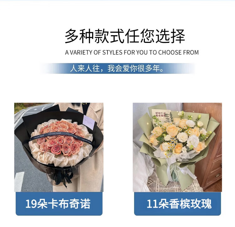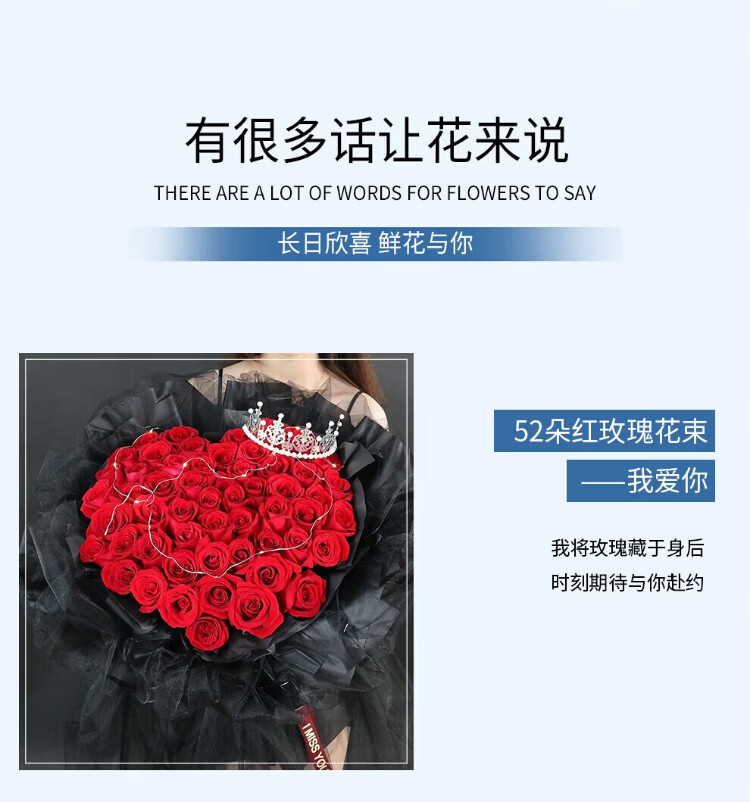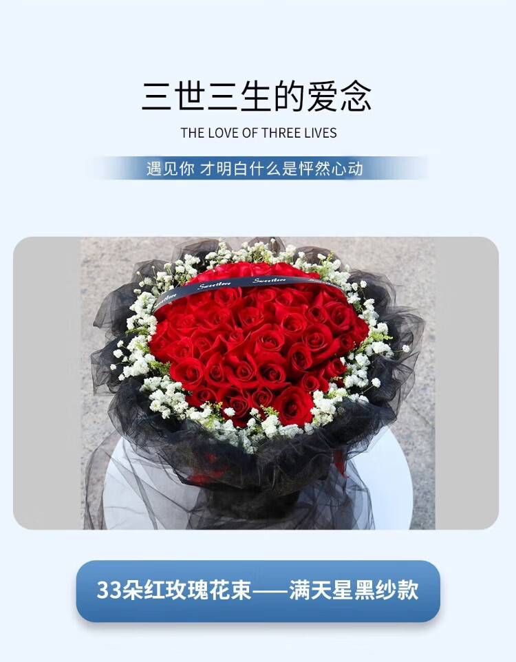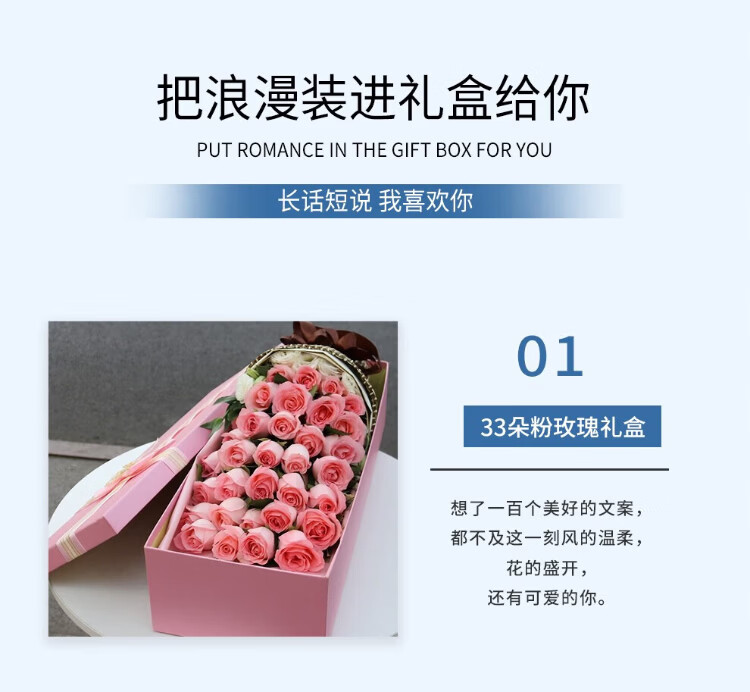 Mengxin Flowers Valentine's Day Flower Express 11 red roses gift box bouquet for girlfriend's birthday gift nationwide citywide delivery 33 blue enchantress bouquet - love that never fades