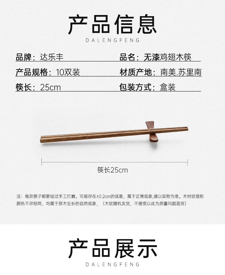 Dalefeng Chicken Wing Wooden Chopsticks 10 Pairs KZ007