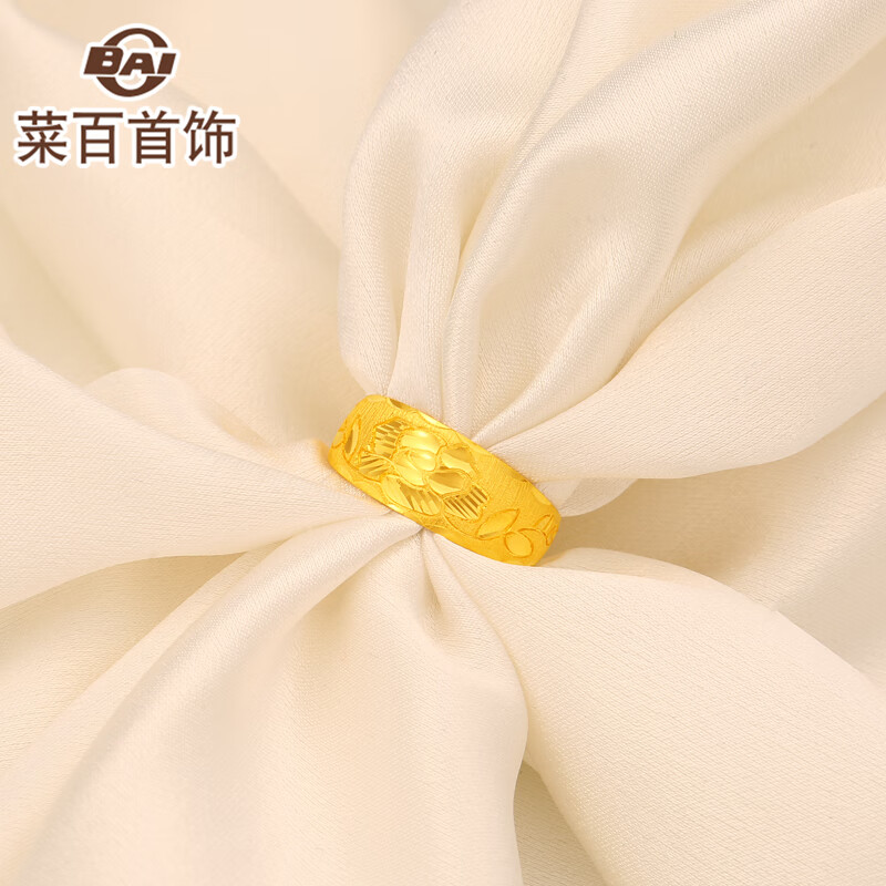 Caibai Jewelry Gold Ring Pure Gold Carved Flower Ring Fashionable Women’s Ring Living Circle Priced HJ Gold Ring Approximately 5.52g