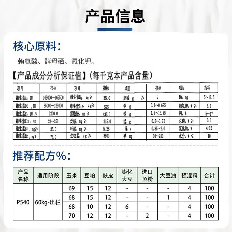 It is said that one ton P540 4% fortified large pig premix pig feed for large pigs net weight 1000kg 1000kg
